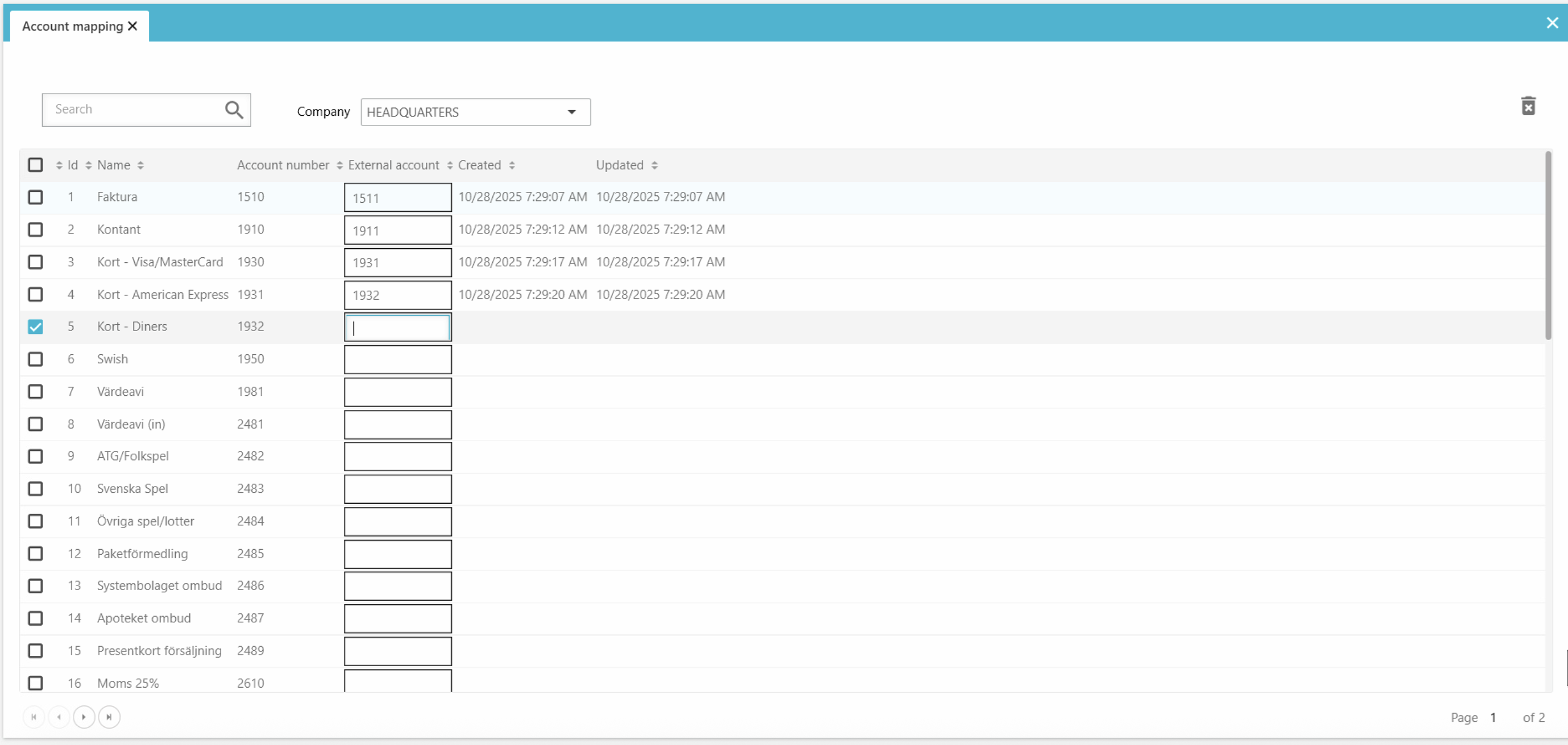This feature means that you can set your own chart of accounts for each company for the Fortnox, Visma Ecom/Spiris and SIE file integrations.
