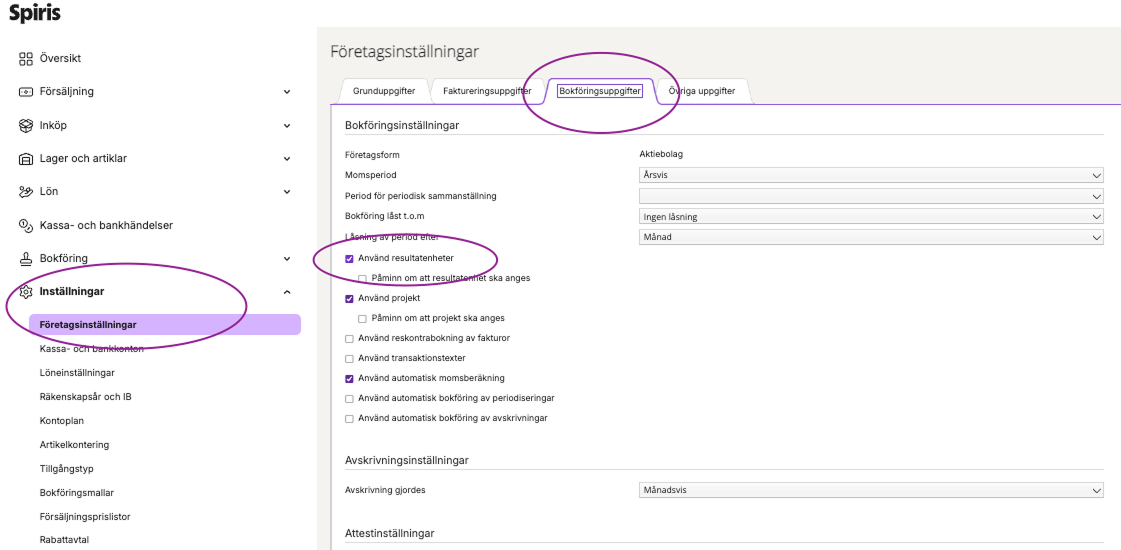 If you activate the Spiris integration for accounting, do not use the SIE export feature to import sales data into Spiris. Doing so will create duplicate accounting entries.