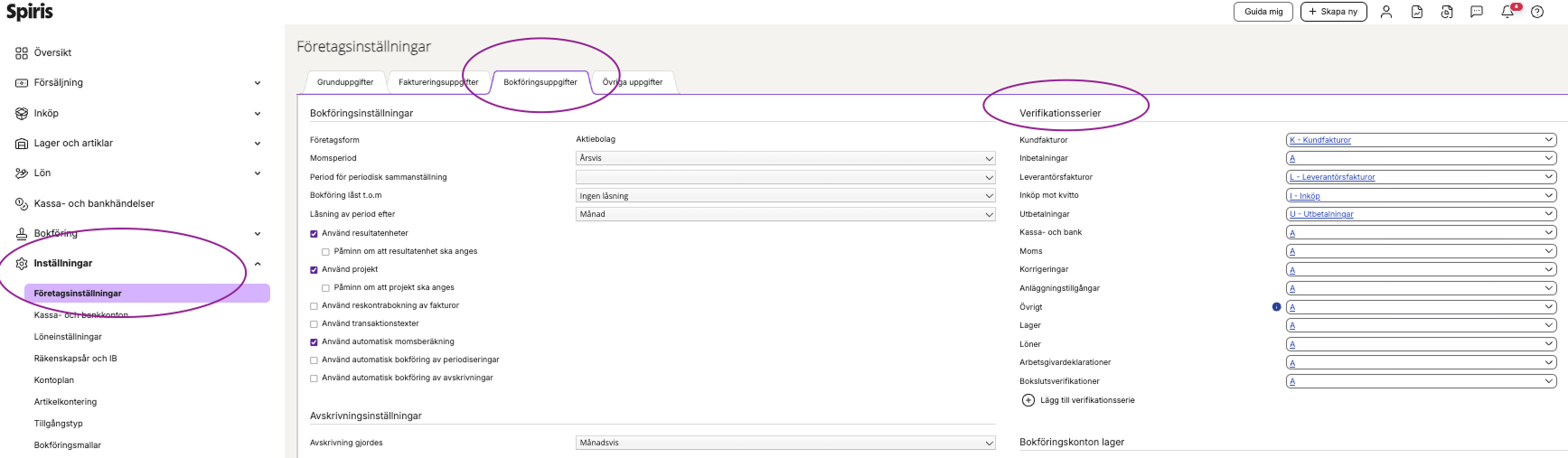 Set the verification series you want to use for the integration. You do this under Settings - Company Settings - Accounting Information.