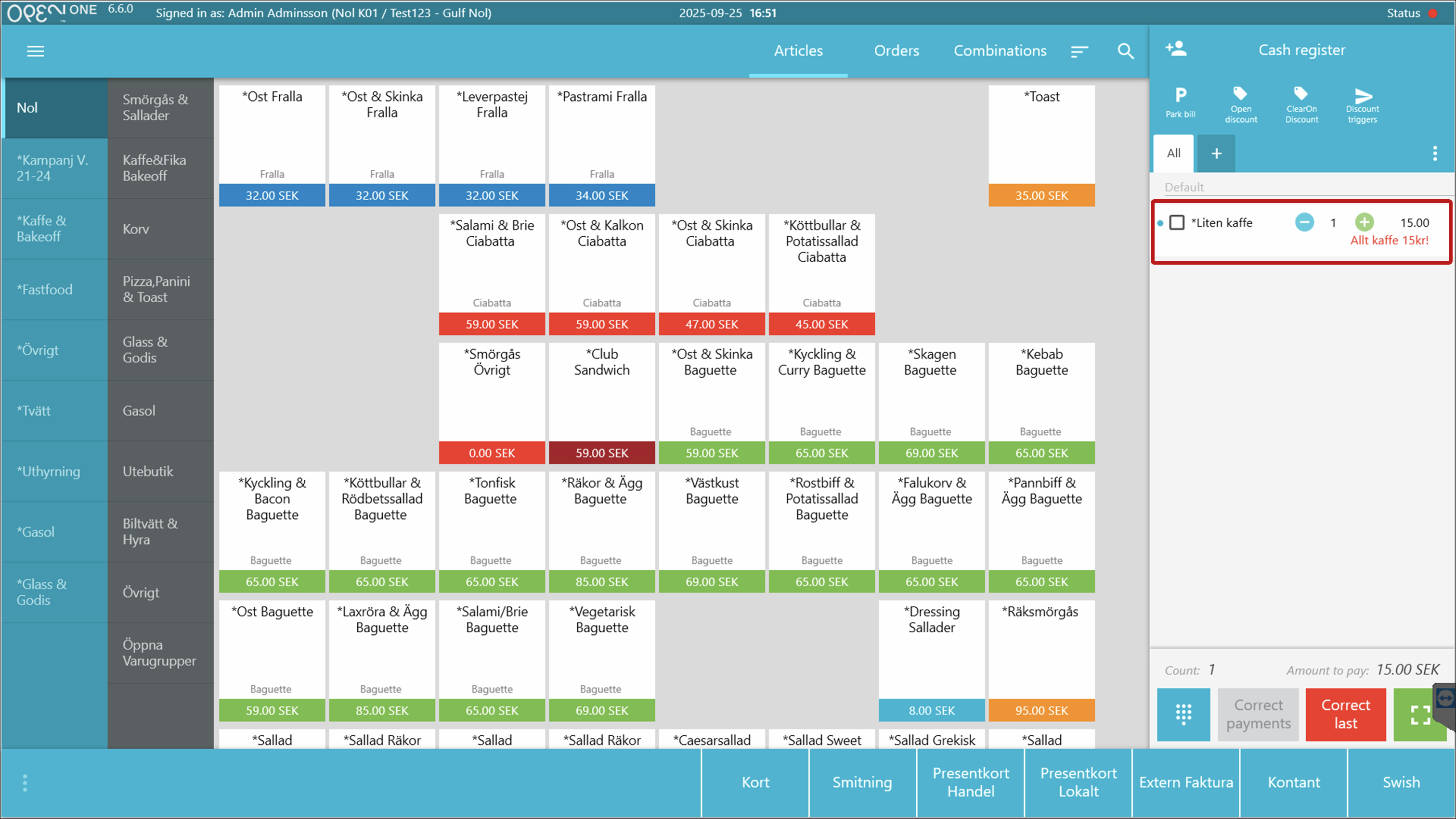 Example of a discount: “All coffee 15 SEK”, a discount that gives you a reduced price when you buying any coffee.