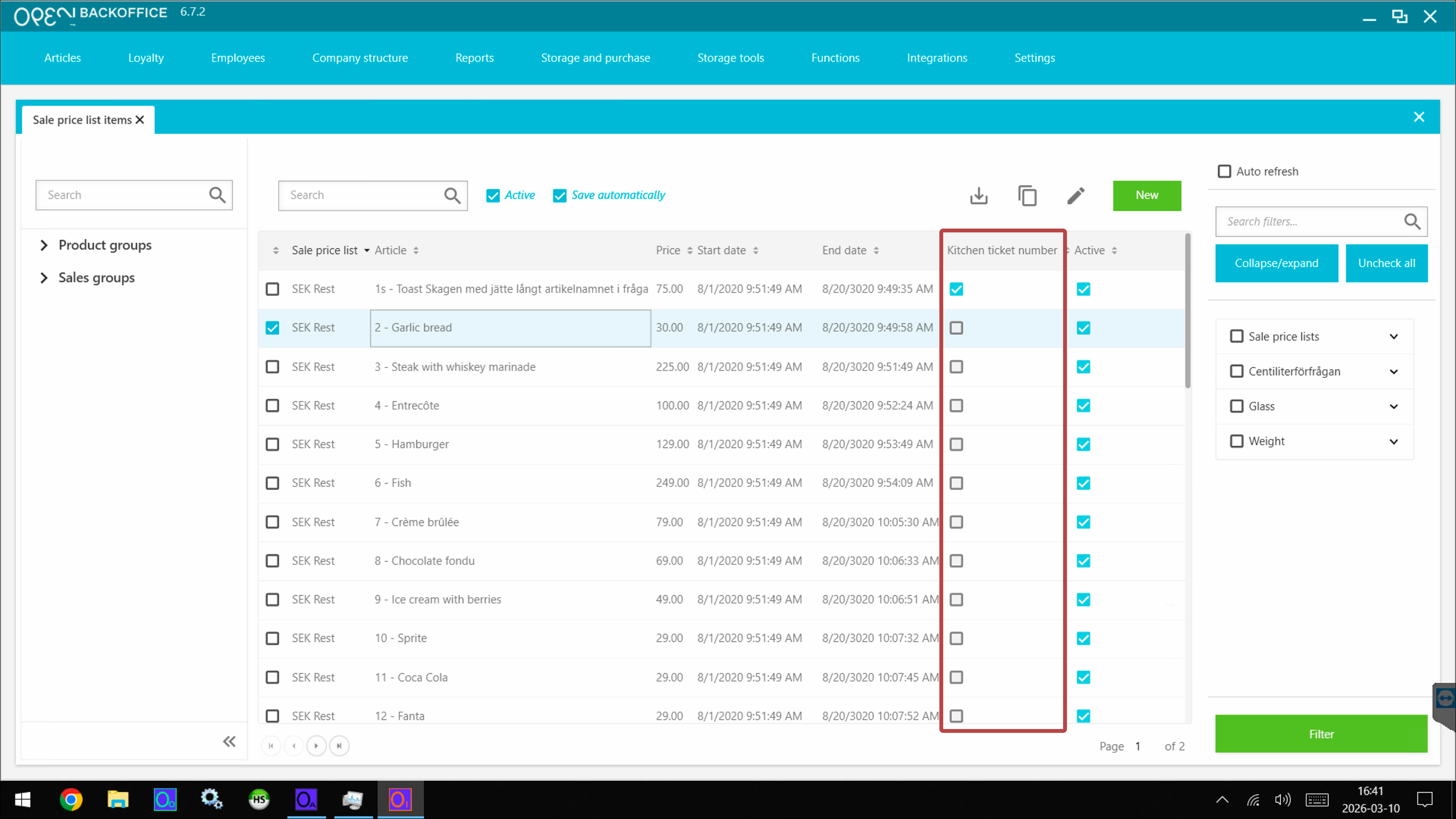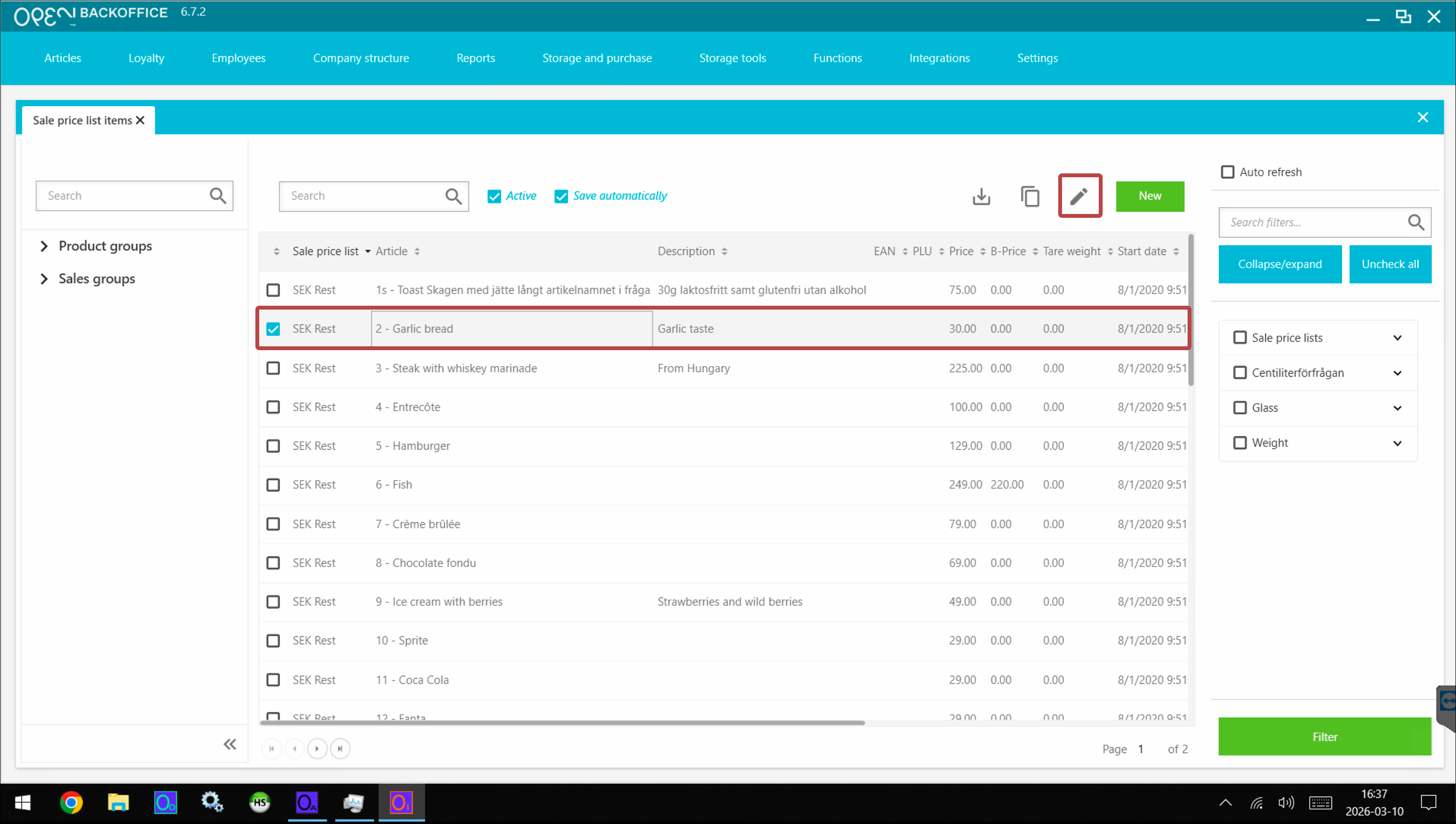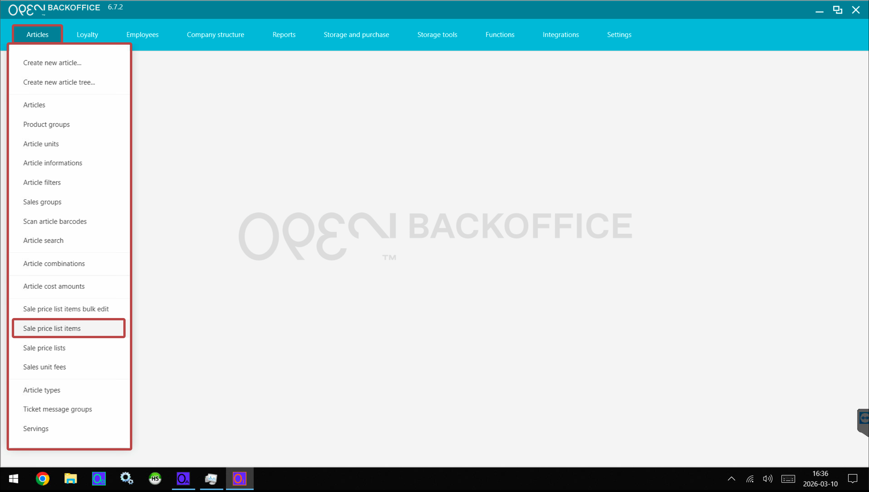 - Go to Articles -> Sale price list items.