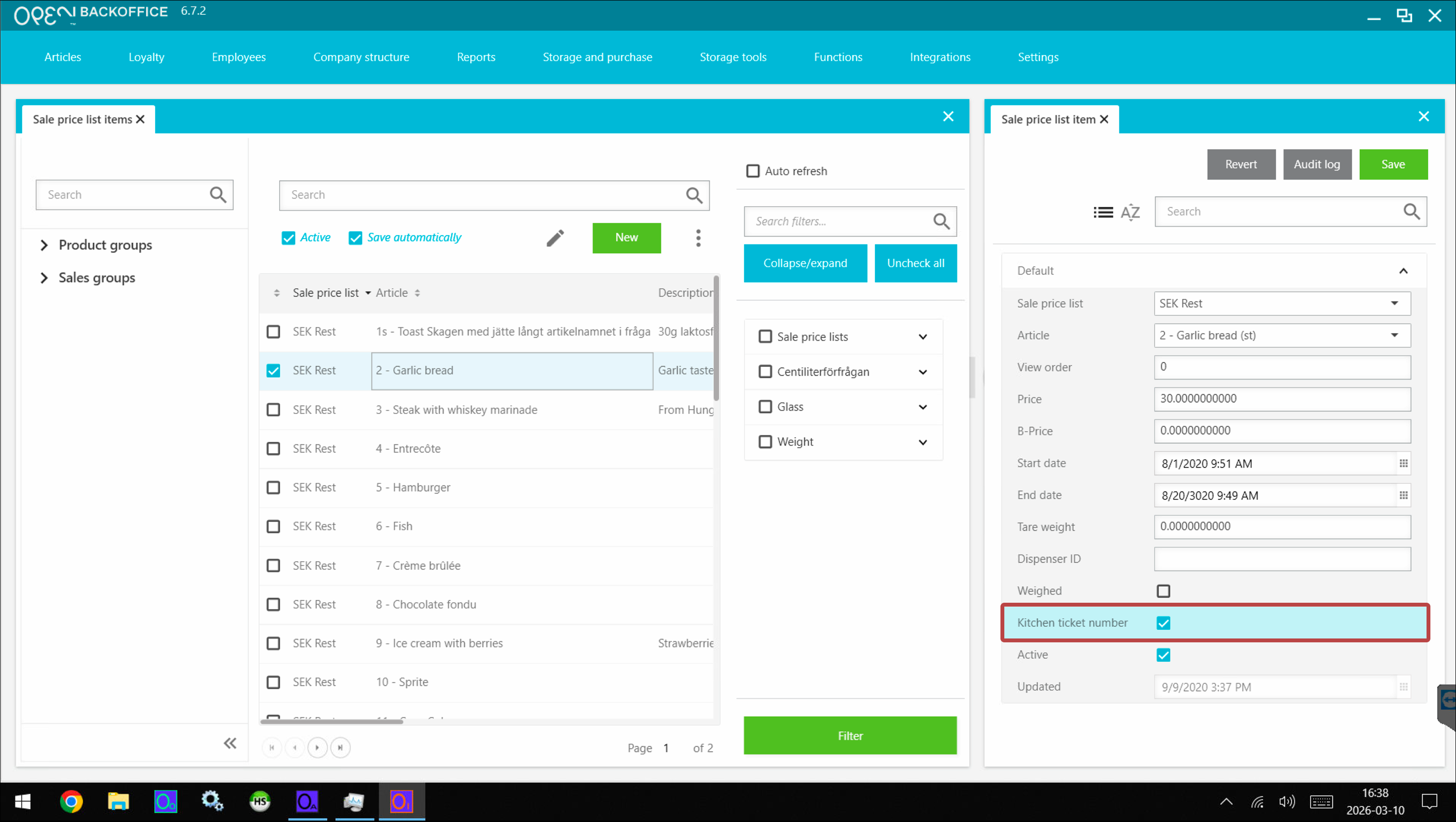 Step 2: Enable kitchen ticket nr on you articles