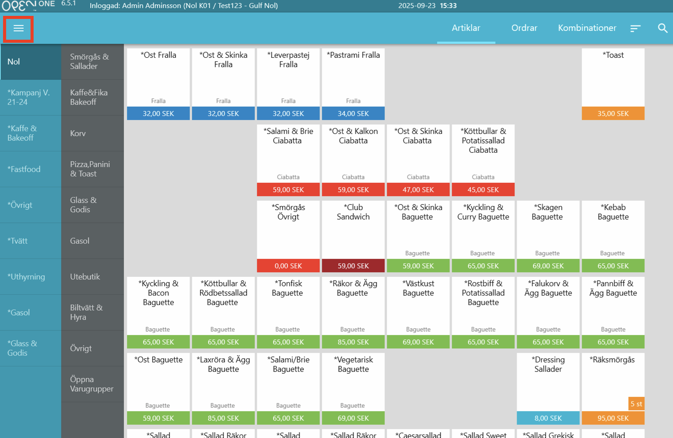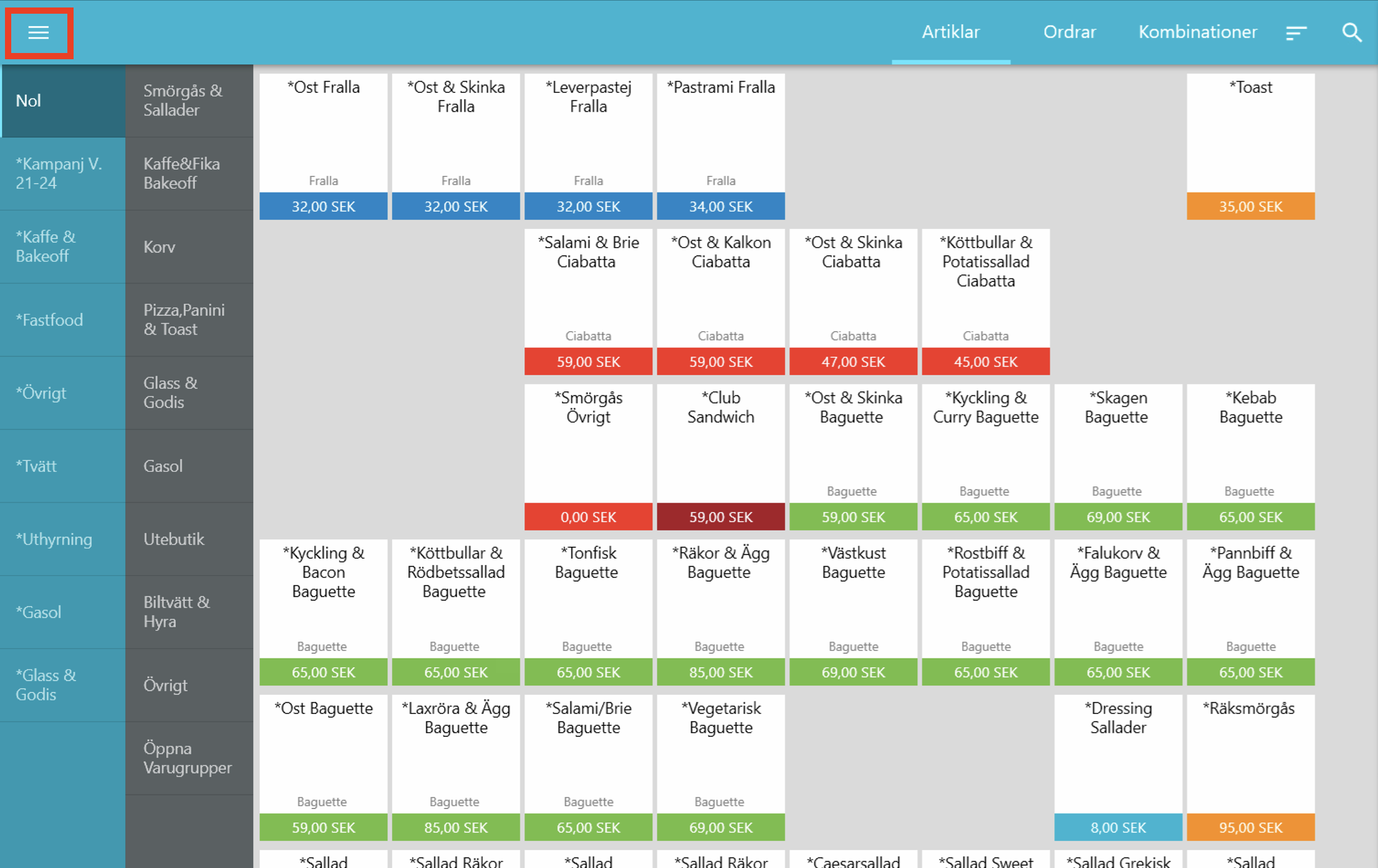 4. To set how many articles are in the mini stock for an article, click on the article card. In this example, Shrimp Sandwich.