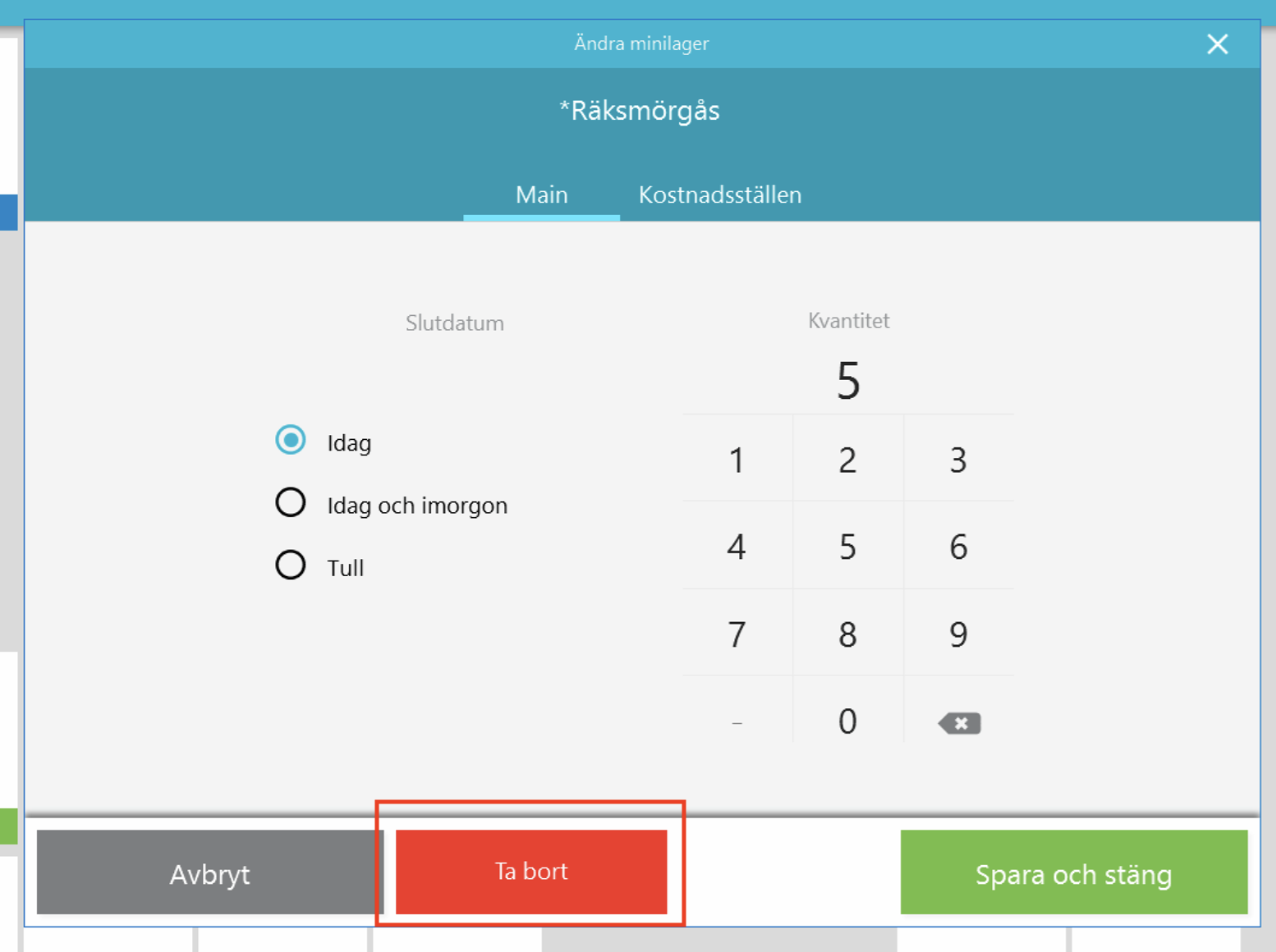 1. If you need to clear the Mini Stock for an article, go to edit mode, which you can find in the Hamburger menu --> Mini Stock.