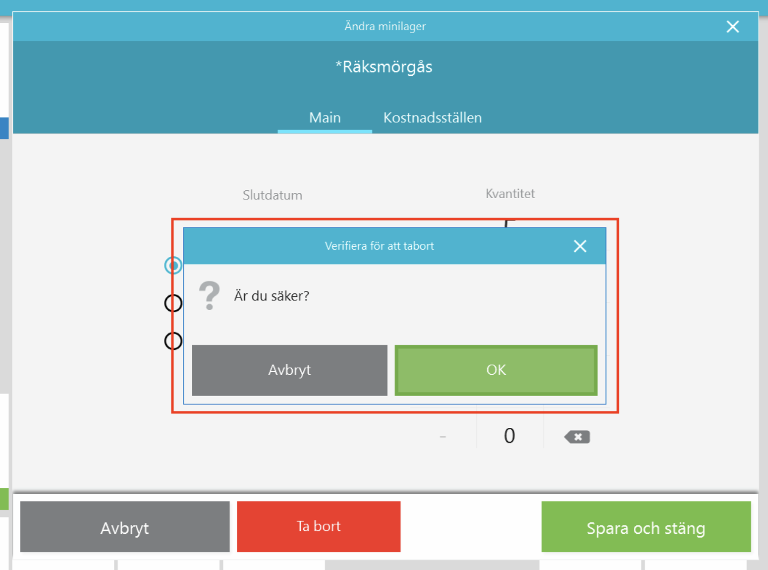 4. A confirmation question will appear asking if you are sure to delete the Mini Stock. Click OK if you are sure, and the Mini Stock for the article will disappear.