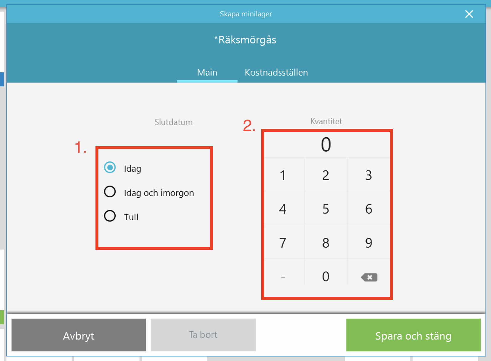 1. You choose an end date for the mini stock. You choose between checking Today, Today and tomorrow or Customs. On Customs, you choose any end date you would like.