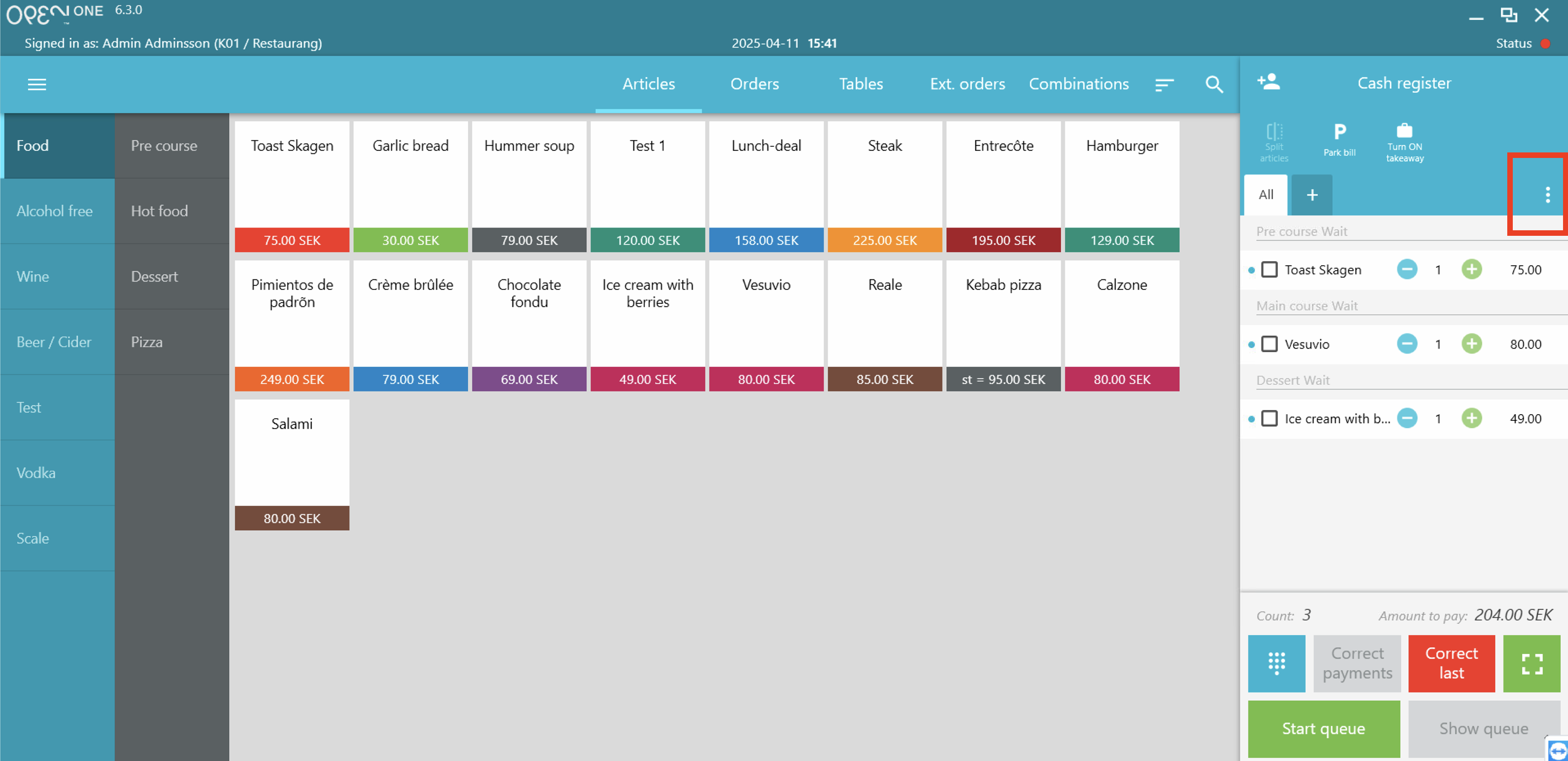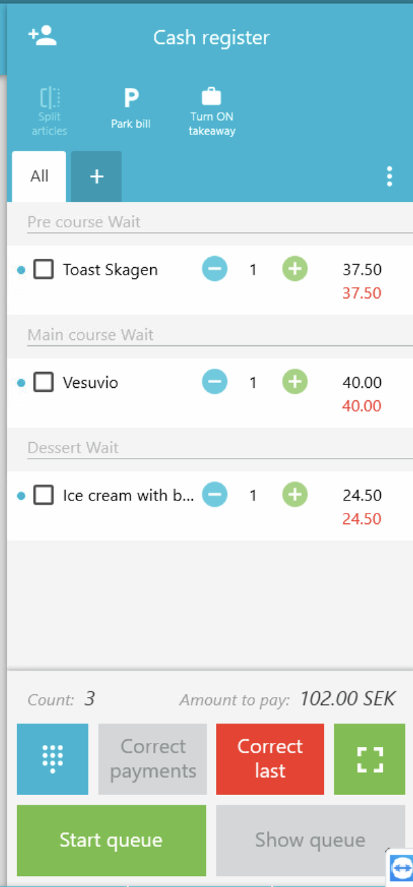 - Enter the customer's articles as usual. The articles will appear on the right side of the screen.