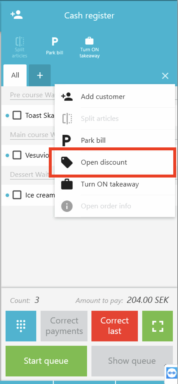 - After that, the discount will be automatically added to the cash register cart. Proceed with the purchase as usual.