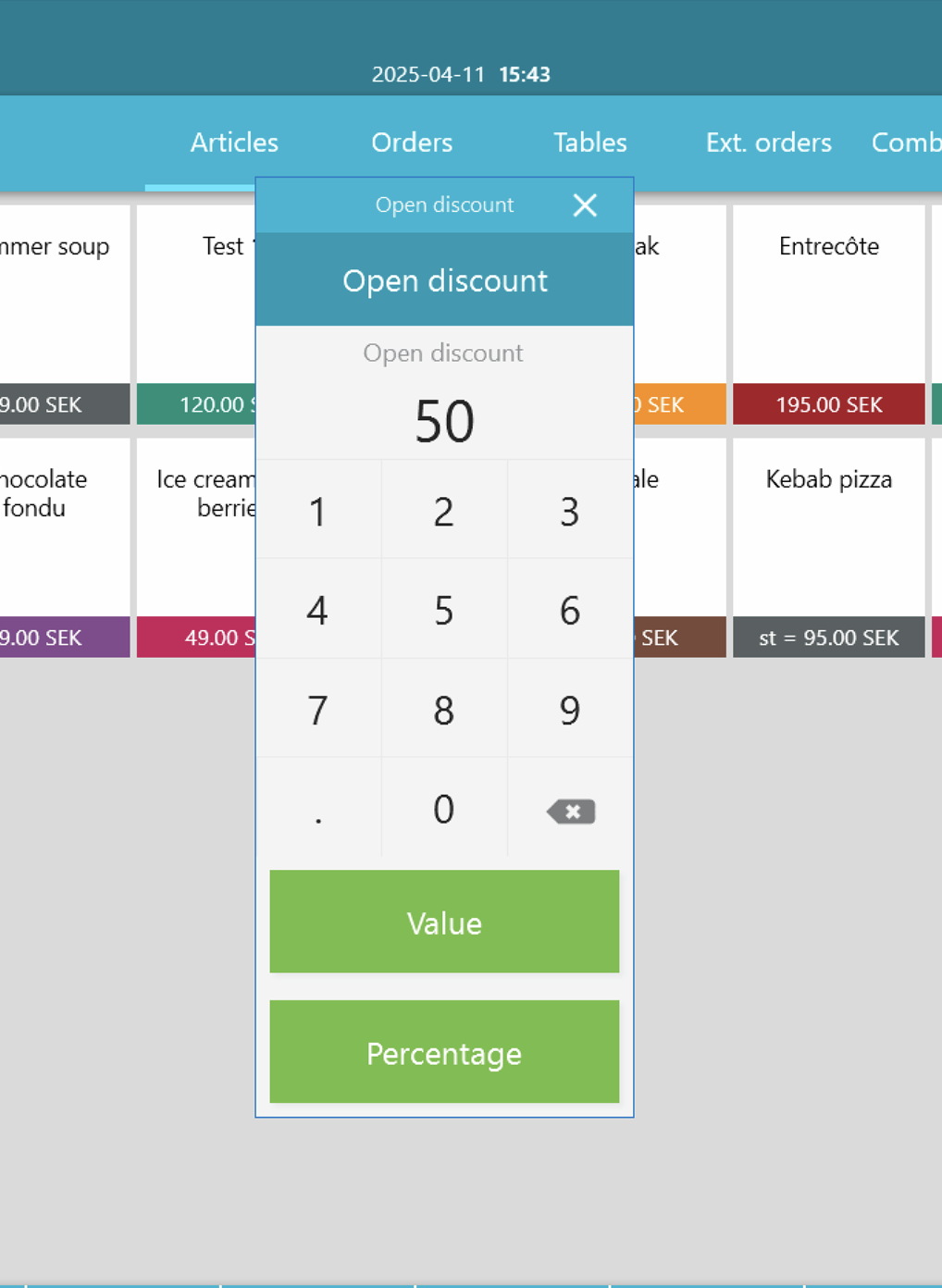 With Open discount, you can manually enter any discount amount for a purchase.