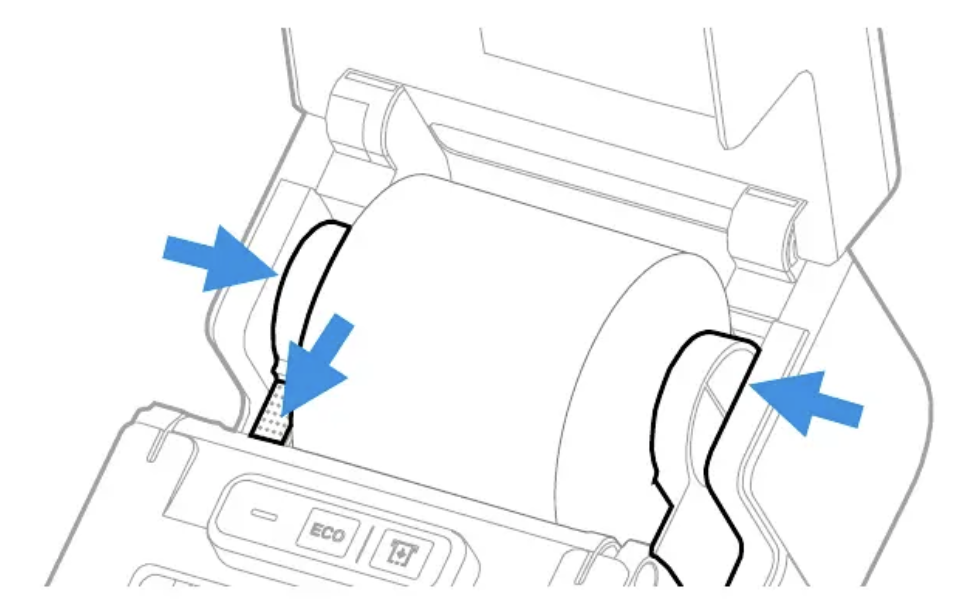 3. Insert the media roll between the media hubs as shown.