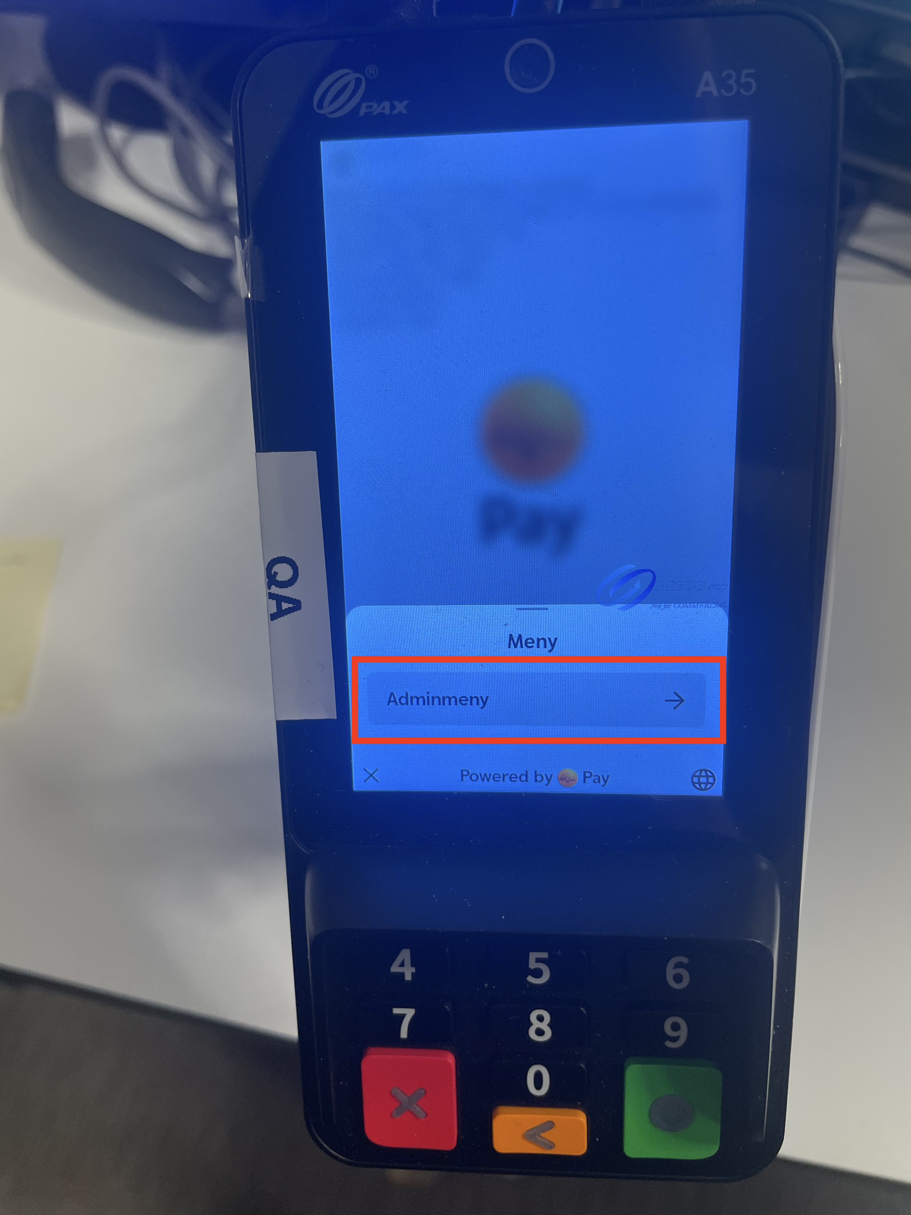 1. To access the menu on the card terminal, click on the three dots in the lower left corner of the display.