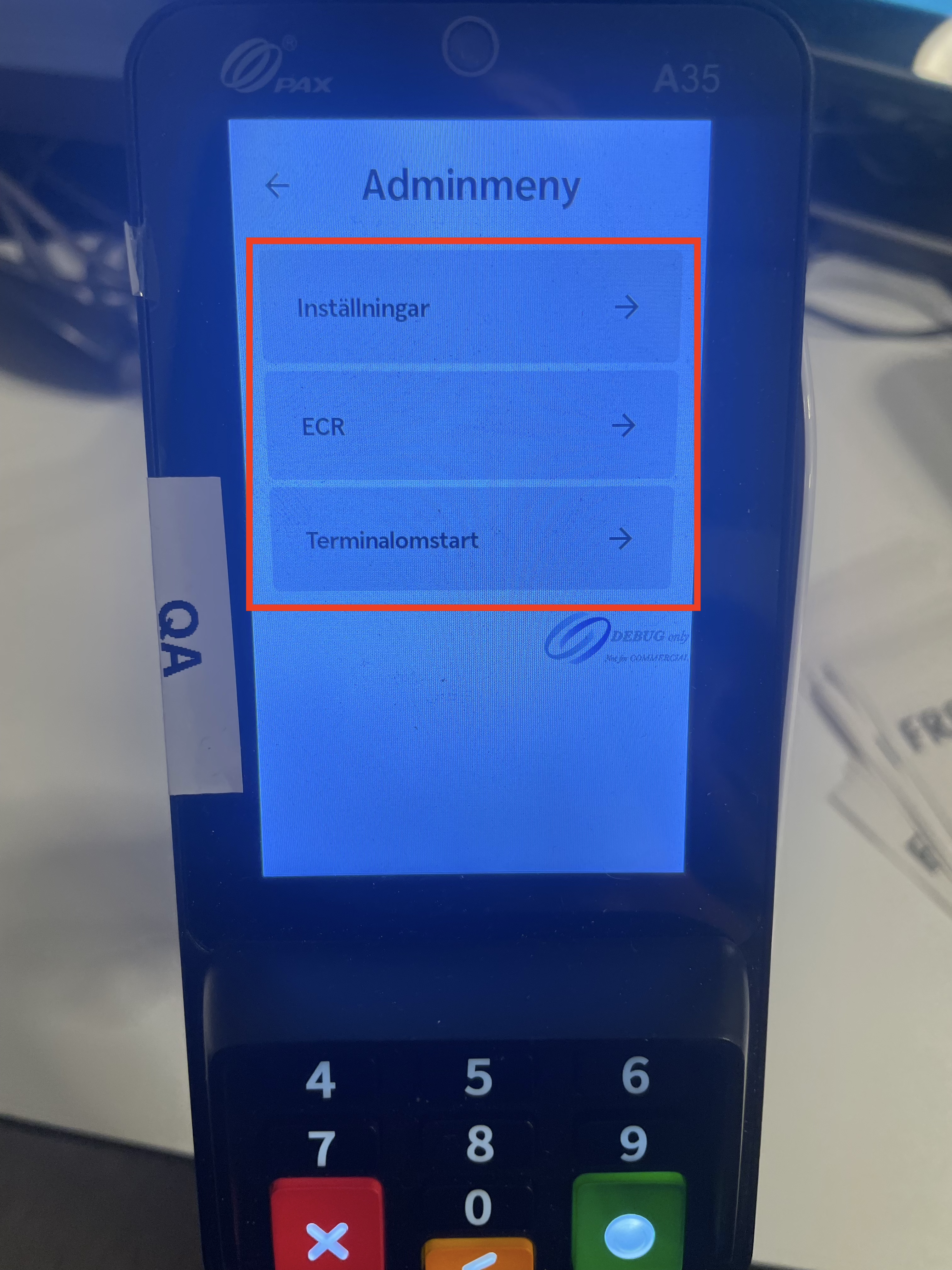 4. In this mode you can choose between Settings, ECR and Terminal restart:
