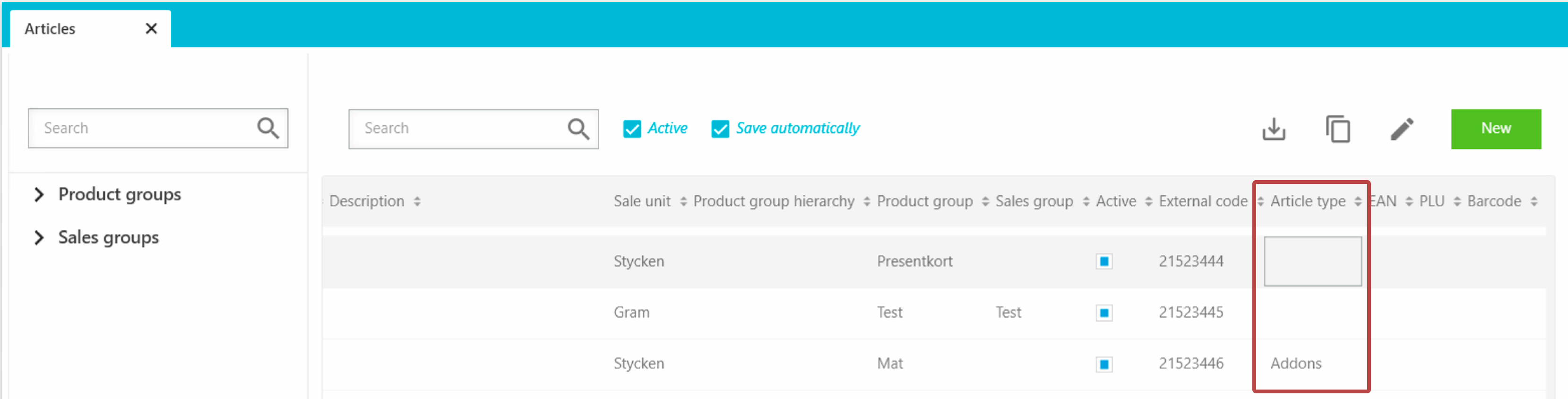 Article type is now visible as a column in the grid view for Articles in Backoffice, making it easier to identify article types at a glance.
