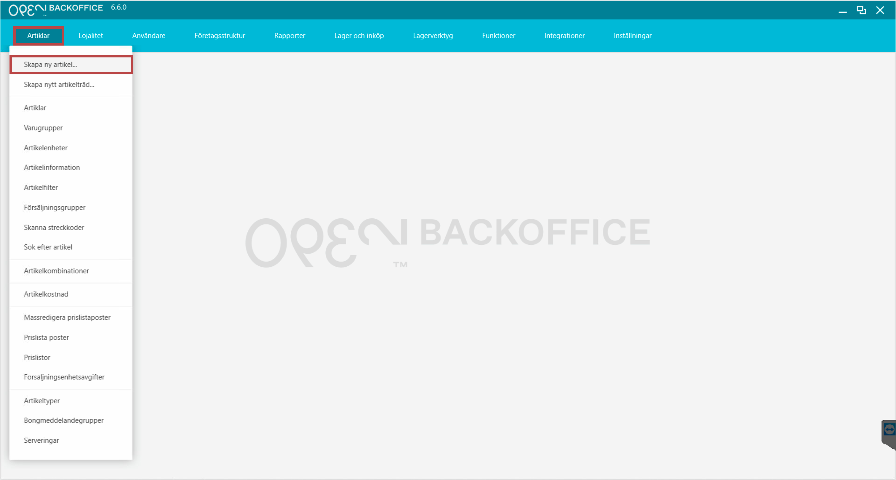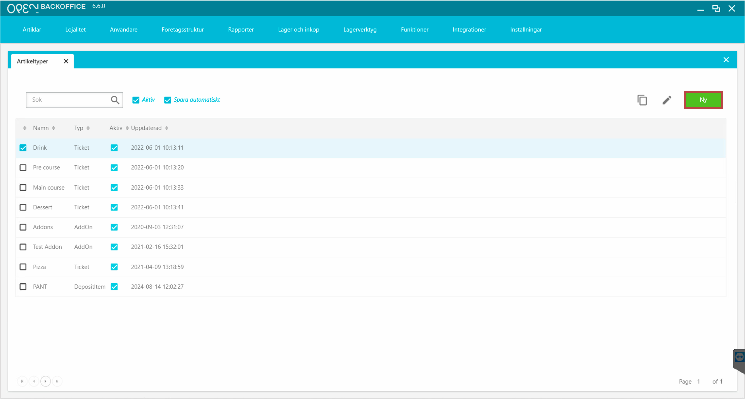 Nu är det dags att skapa själva tillvalsartikeln, t.ex. Extra ost eller Extra skinka.