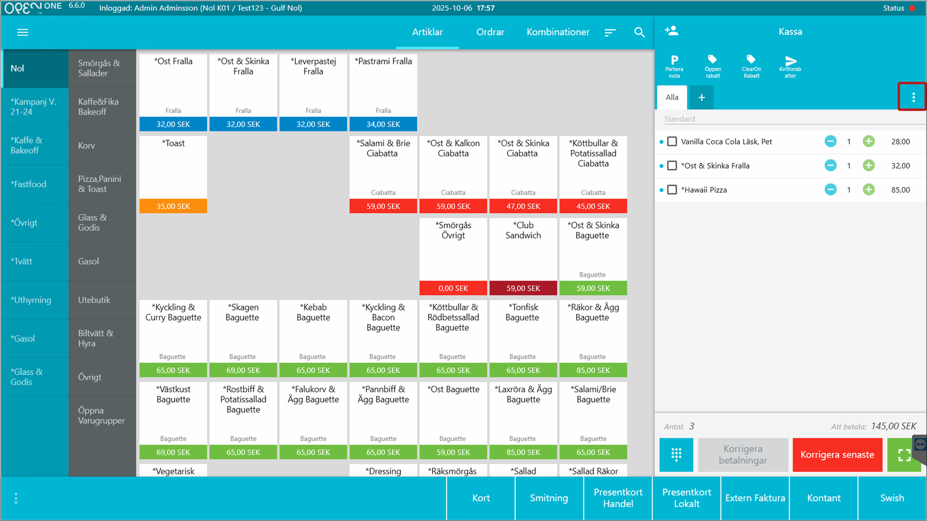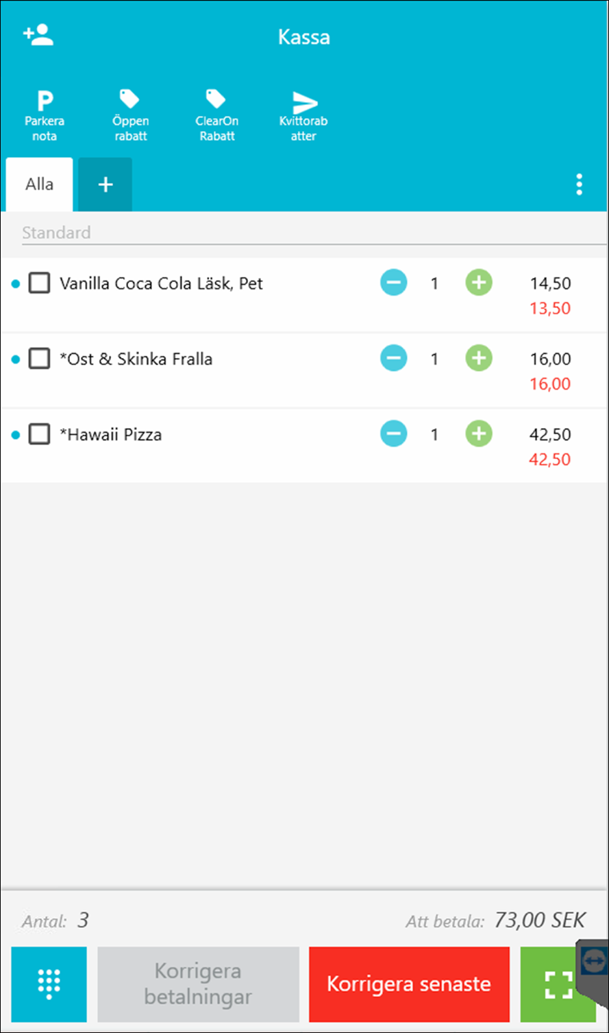 Slå in kundens varor som vanligt. Artiklarna visas till höger i cash register.