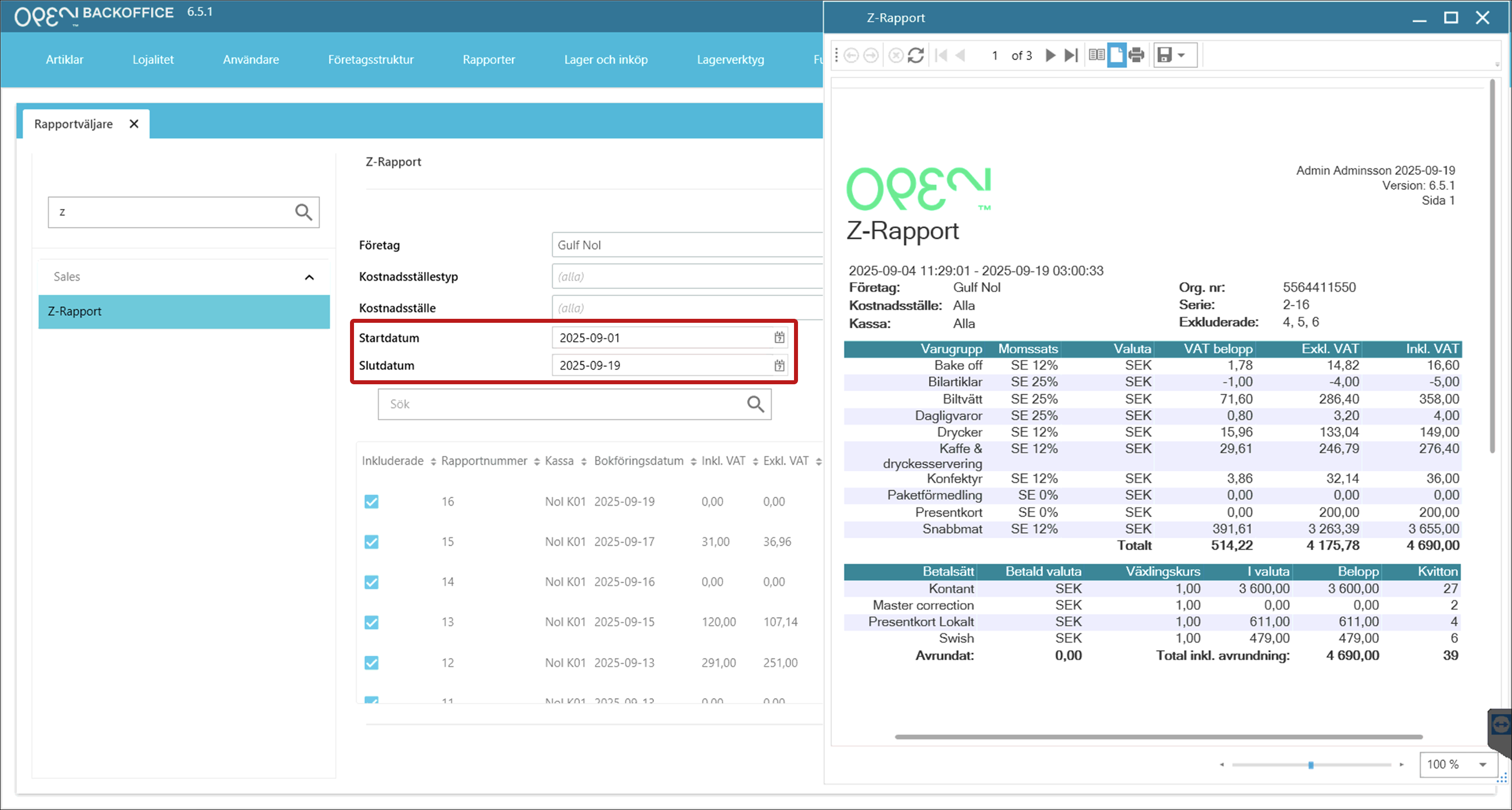 Visa Z-rapporter i BackOffice