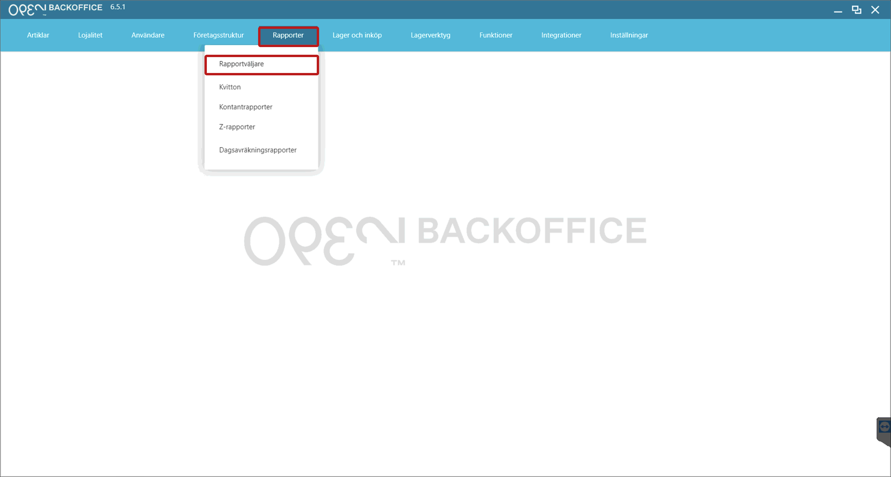 - Gå till Rapporter i toppmenyn (tabmenyn) och välj Rapportväljare.