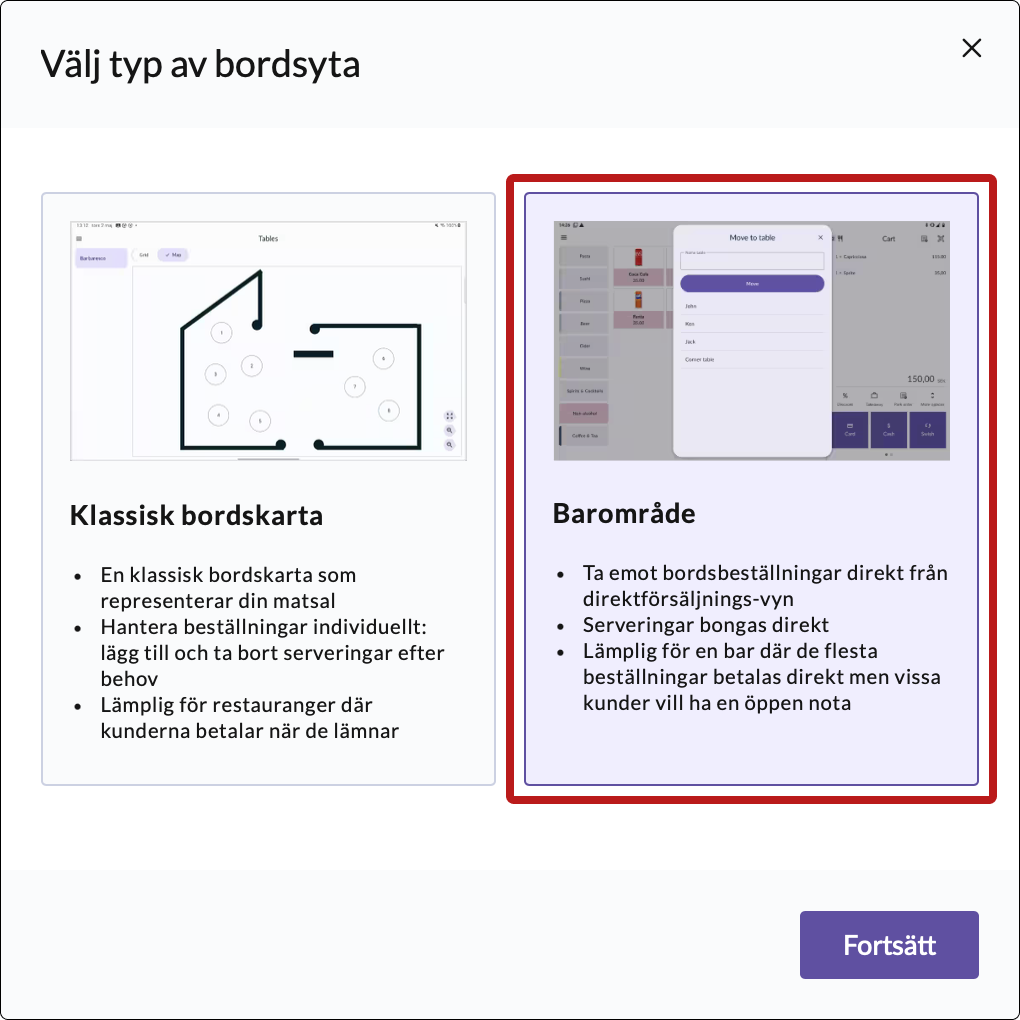Det betyder att barpersonalen kan stanna i huvudvyn för direktförsäljning under hela kvällen – utan att behöva växla till sidan Bord.