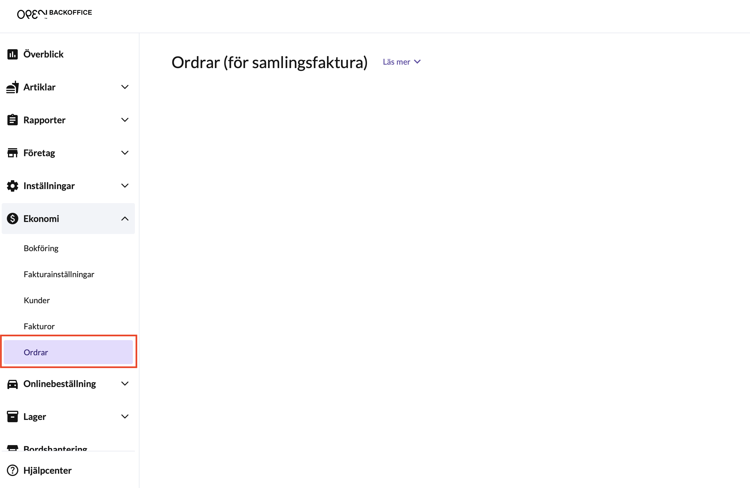 Har du samlingsfakturor aktiverat, så hittar du dem under Ordrar.