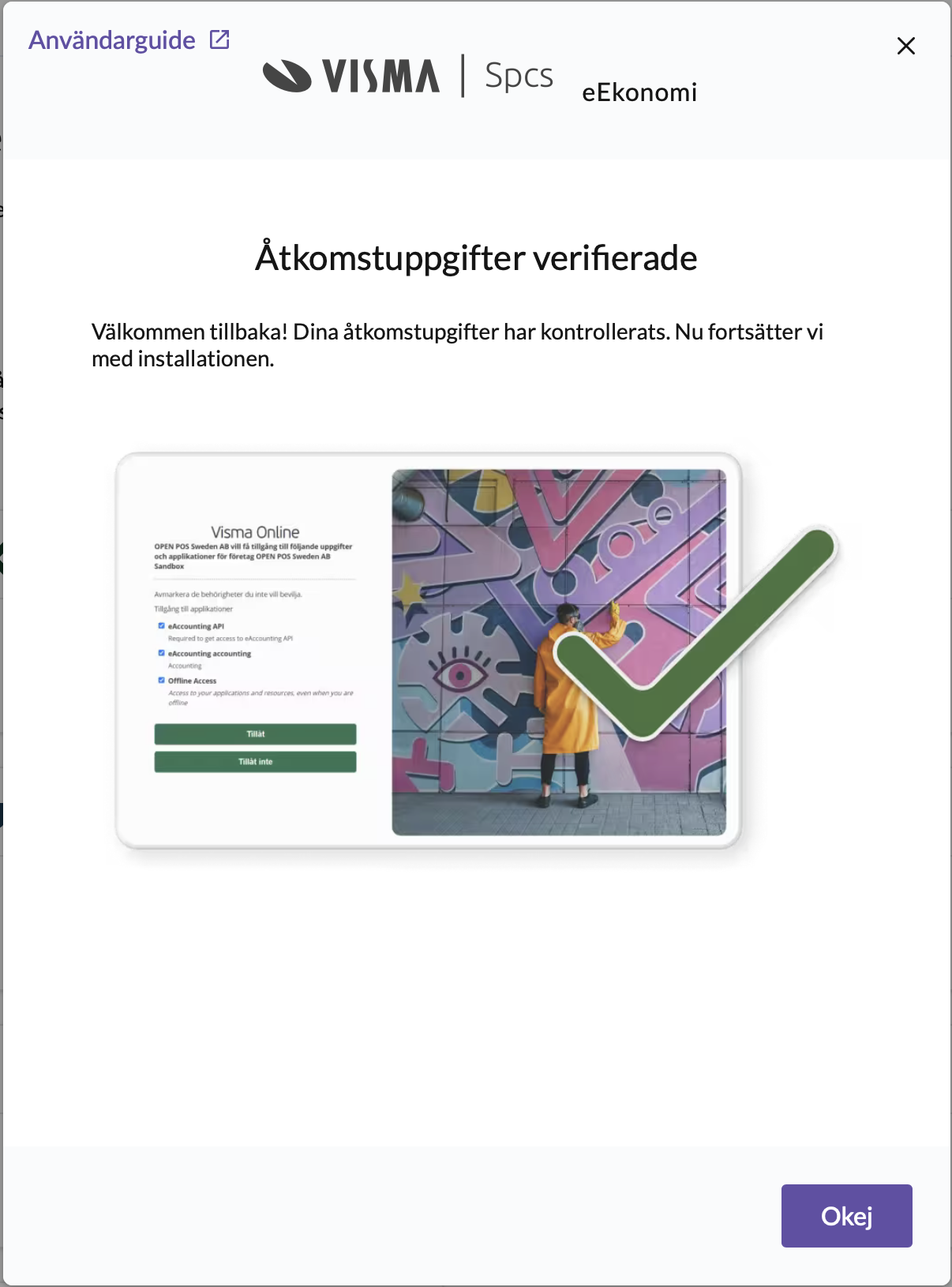 - När åtkomstuppgifterna är verifierade, tryck på OKEJ.