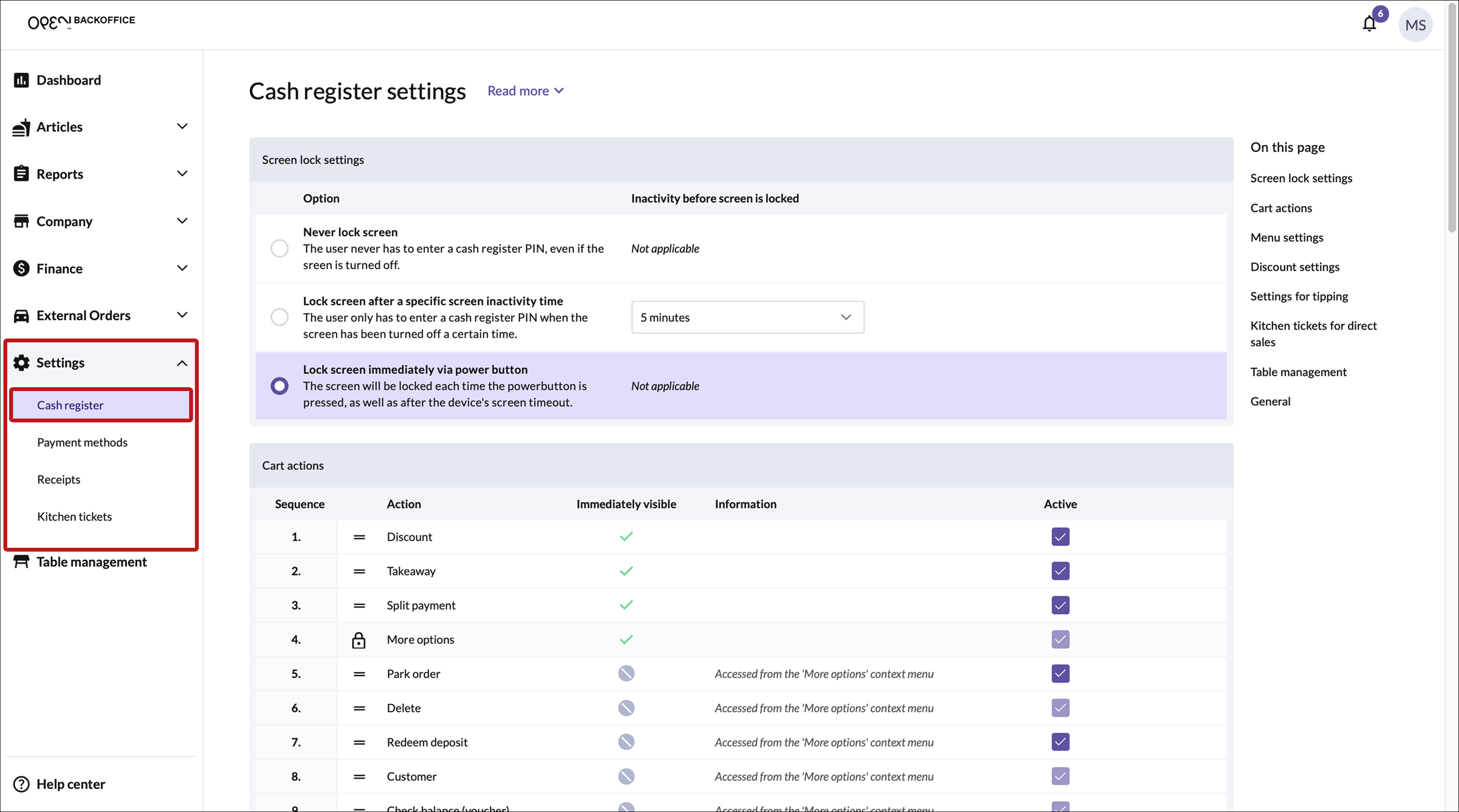 Log in to BackOffice and navigate to: Company > Settings > Cash register