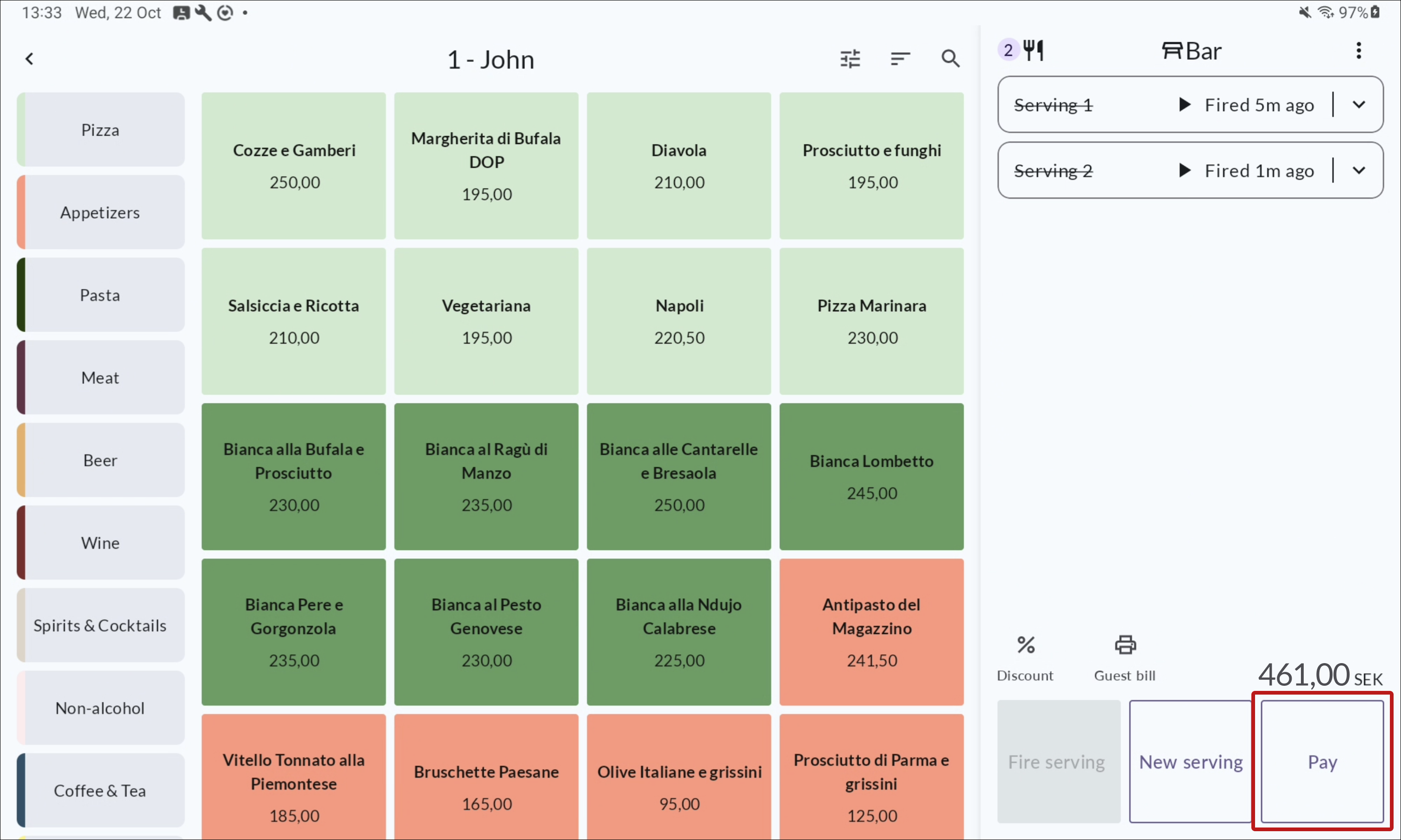 When a guest is ready to pay, you can quickly bring their tab back to the cart.
