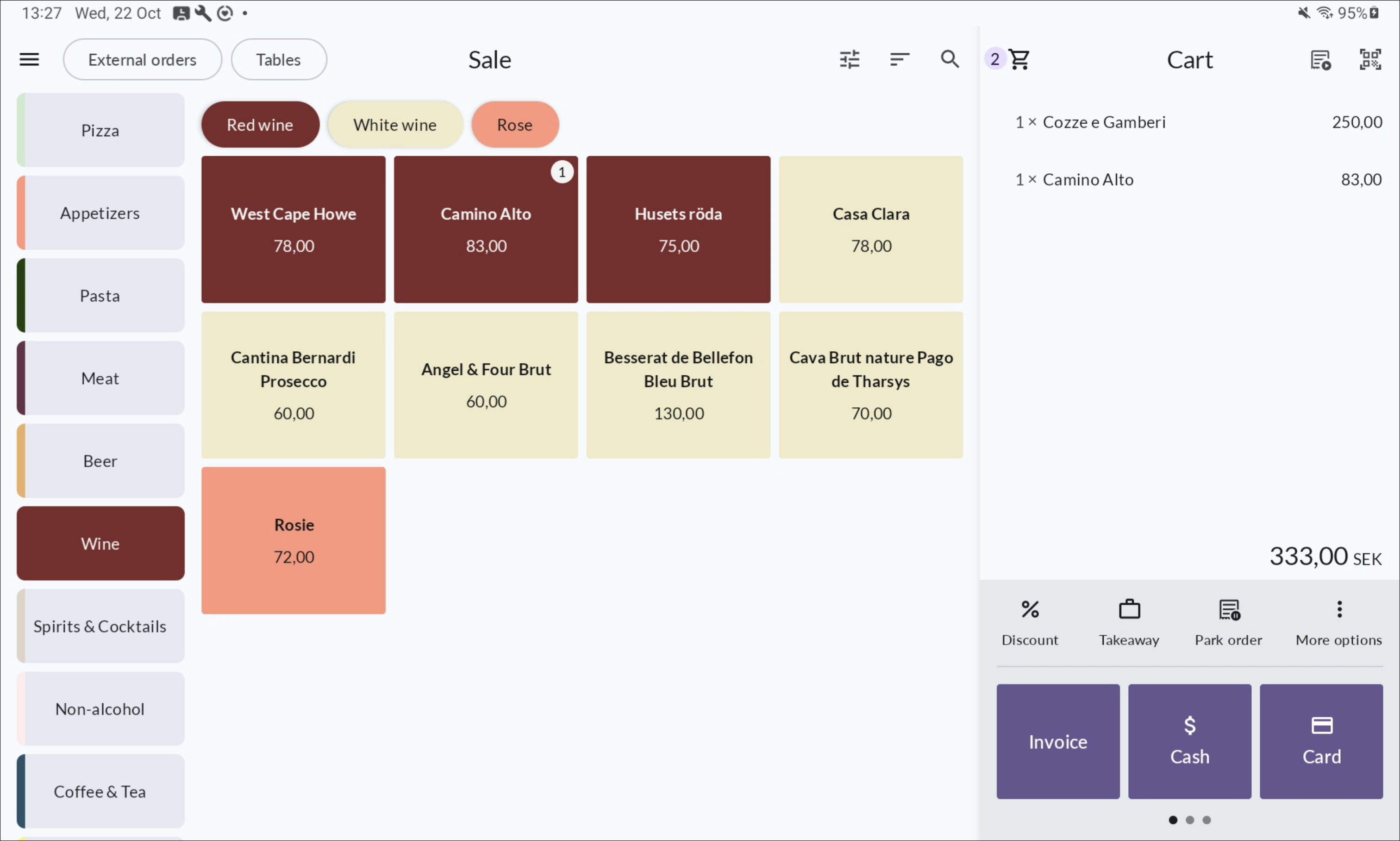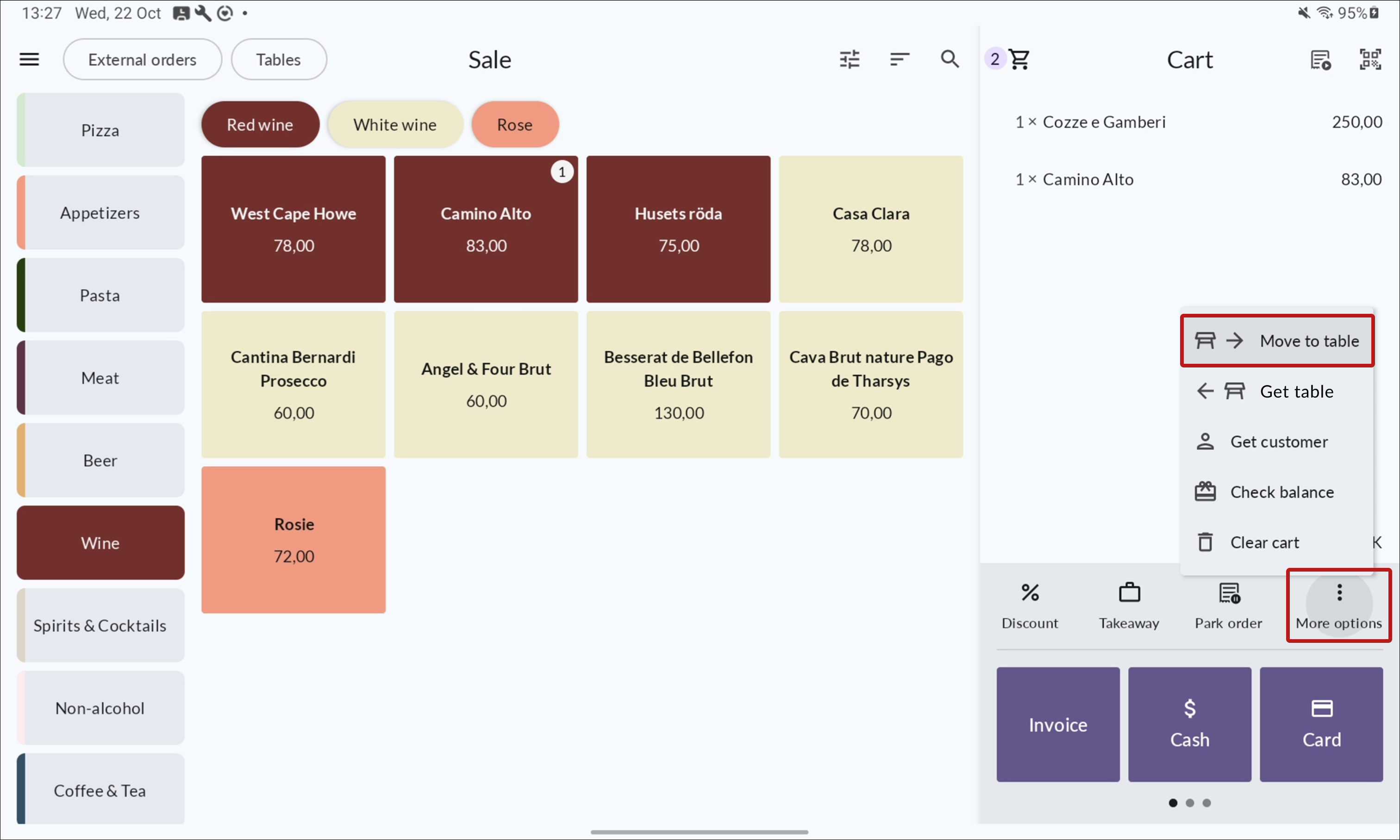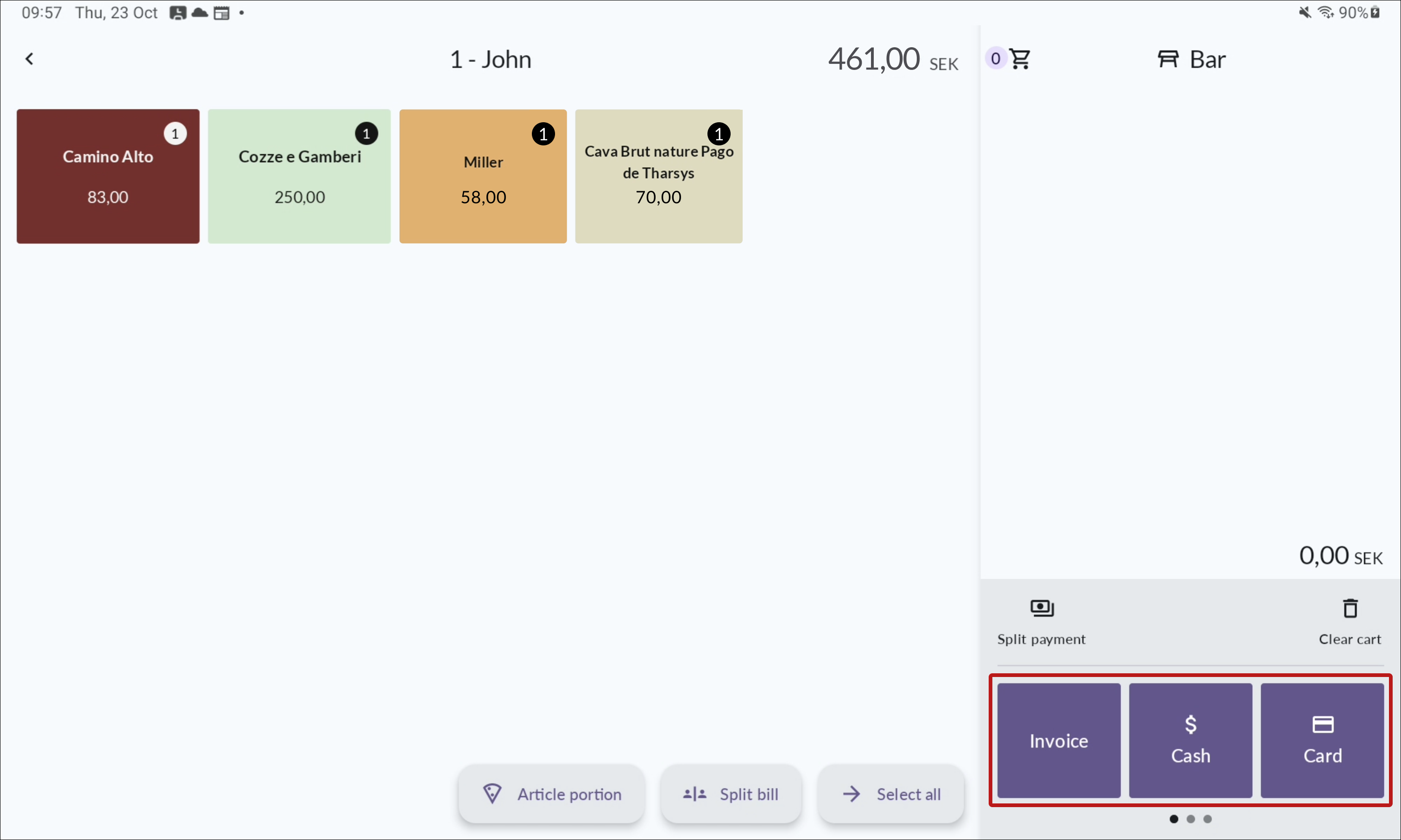 - Article portion: Split individual items (e.g., several guests share a bottle of wine).