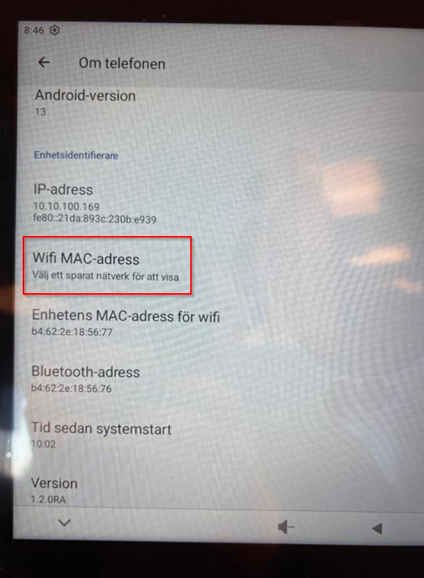 - Click on Wifi MAC address.