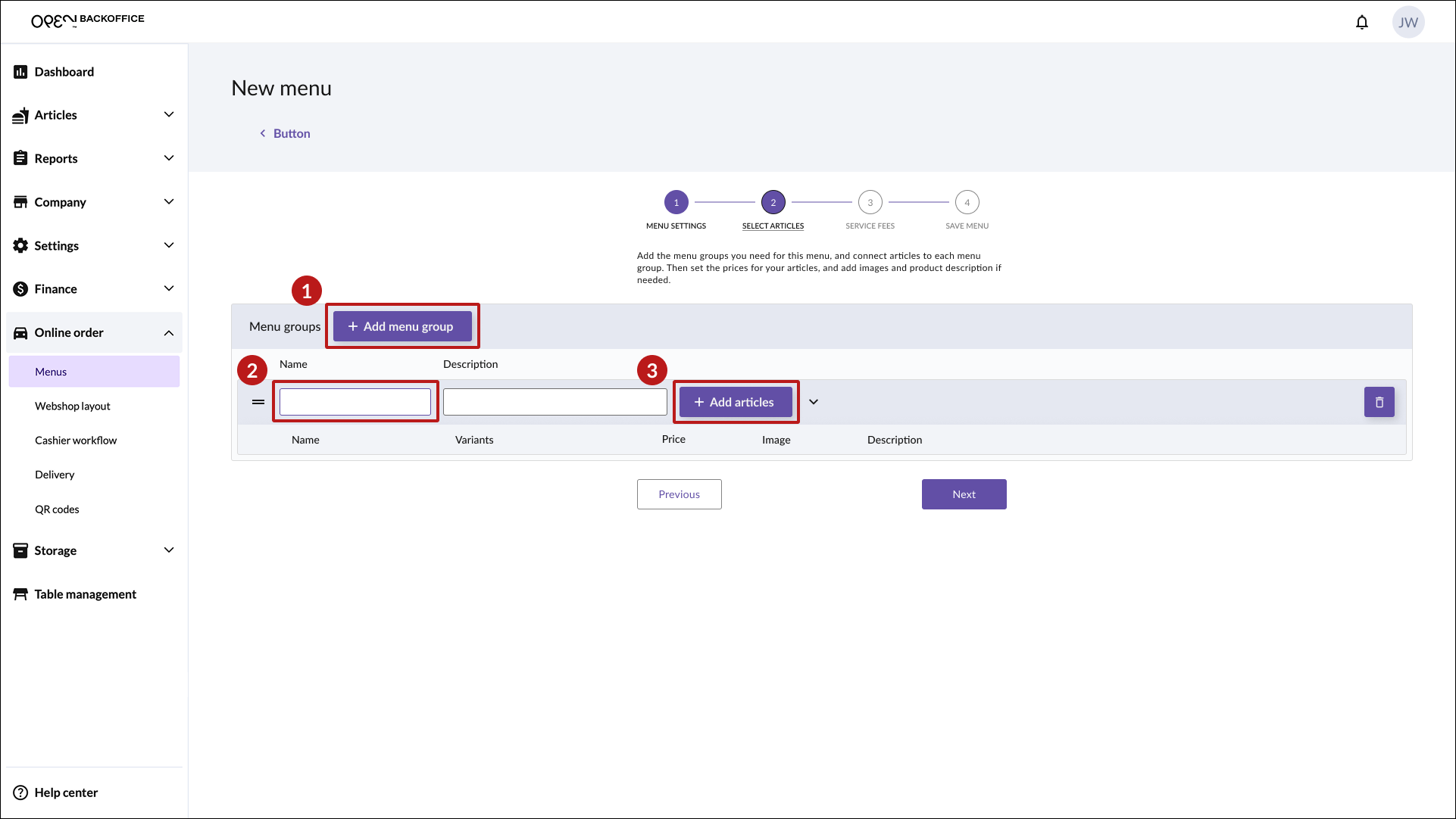 Choose if you'd like to copy menu groups and articles from an existing menu or start blank.
