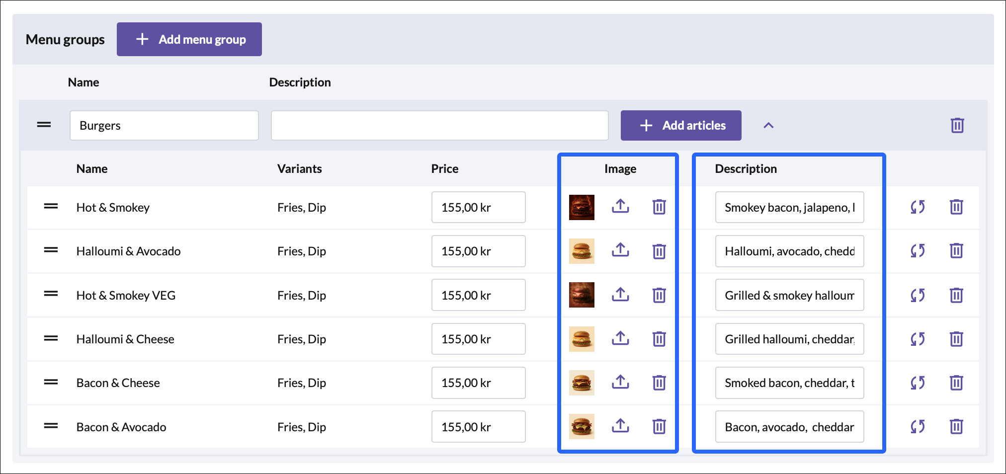 This does not affect the article images or descriptions for direct sales, but only for this specific menu when ordering online.