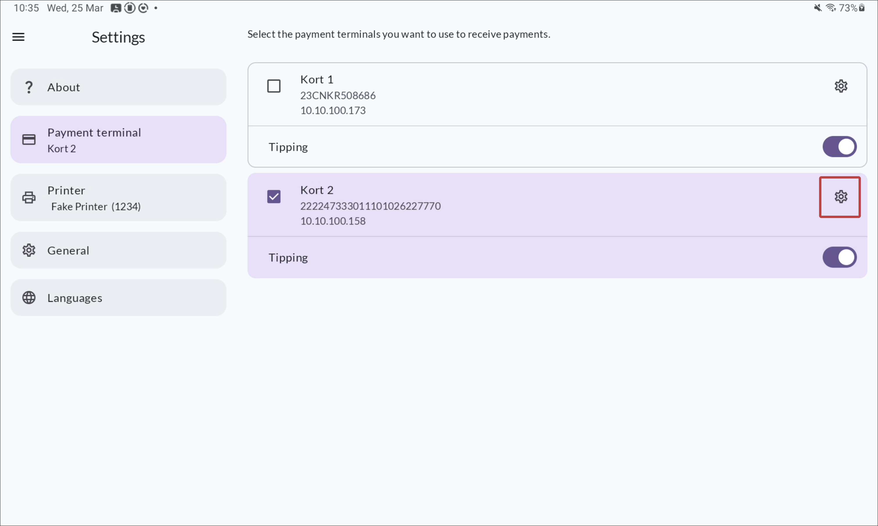 Optional: change the payment terminal name by clicking the cog wheel icon.