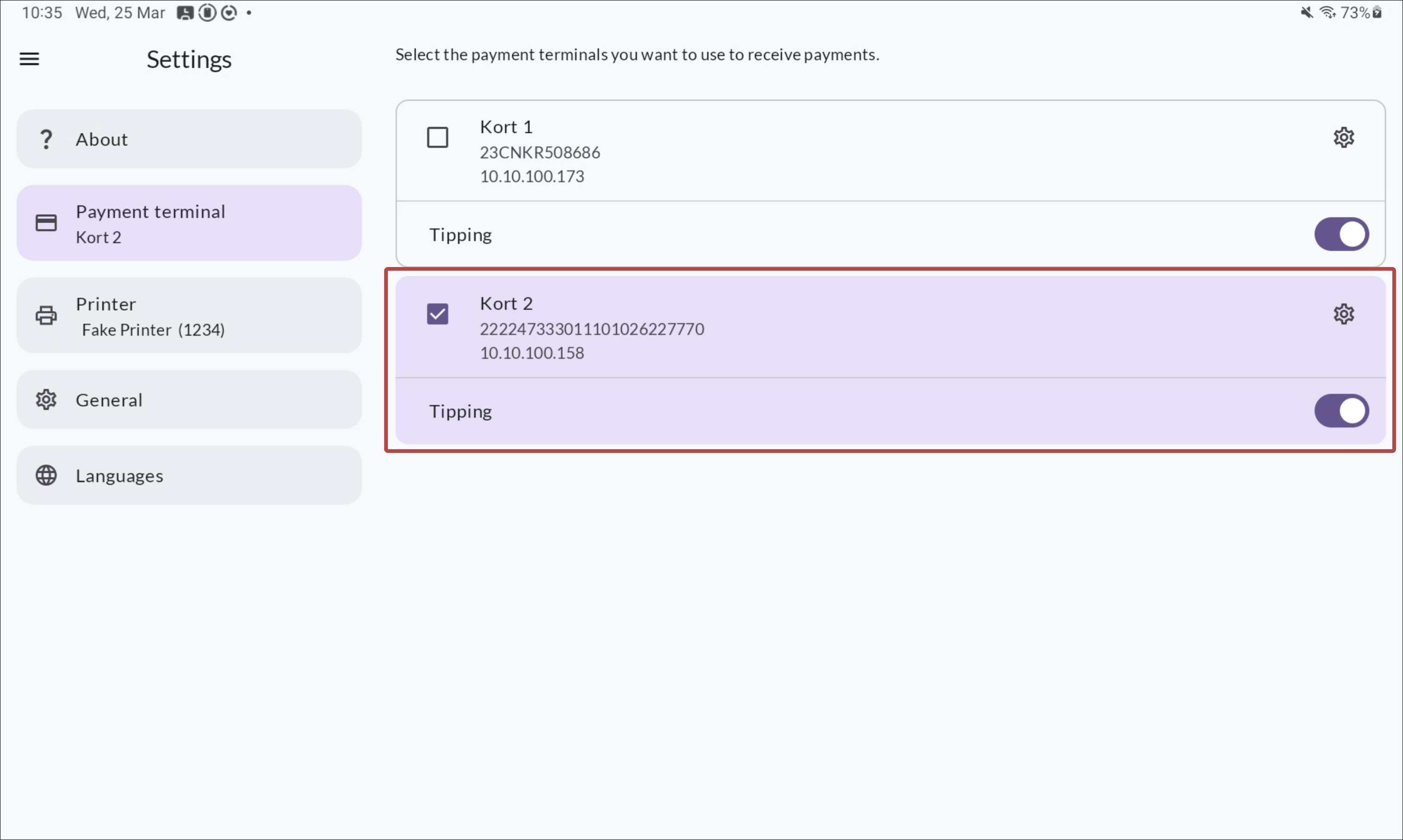 Select your payment terminal from the list.