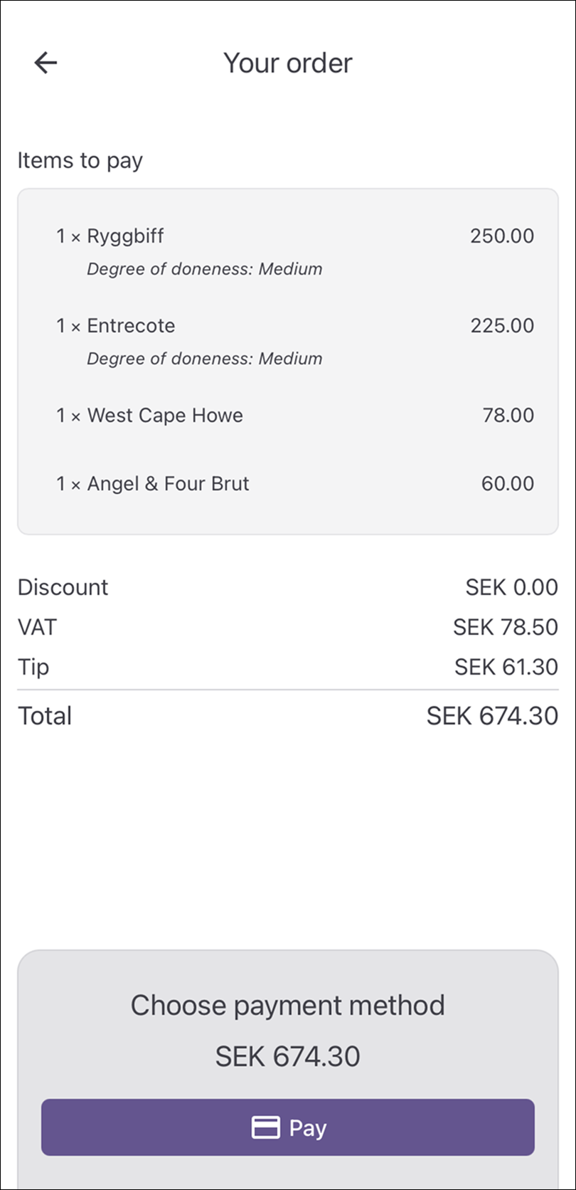 - Review your order and tap Pay to continue.