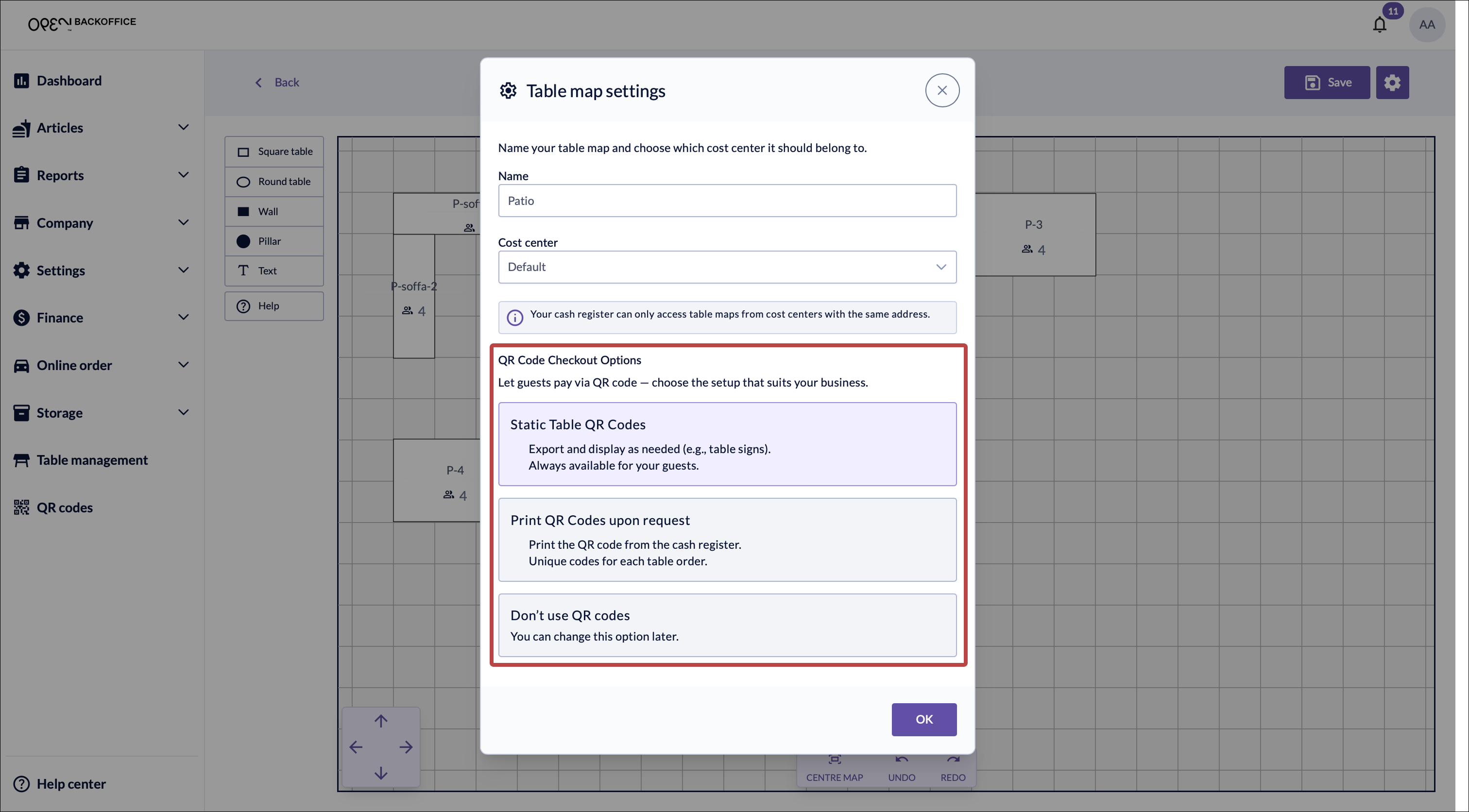 Step 1: Enable QR codes on your table map